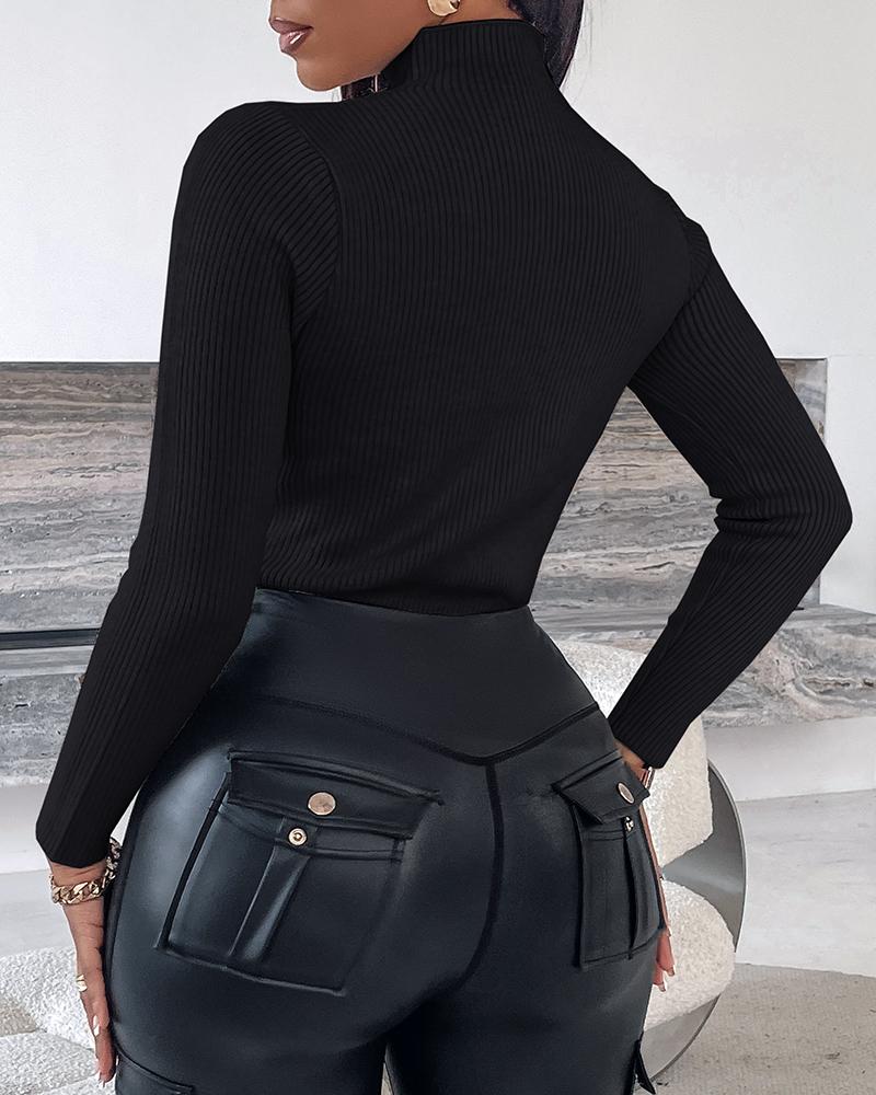 Rhinestone High Neck Long Sleeve Knit Sweater Fleece Lined Basic Layering Soft Thermal Top