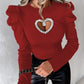 Rhinestone Hollow Heart Gigot Sleeve Top
