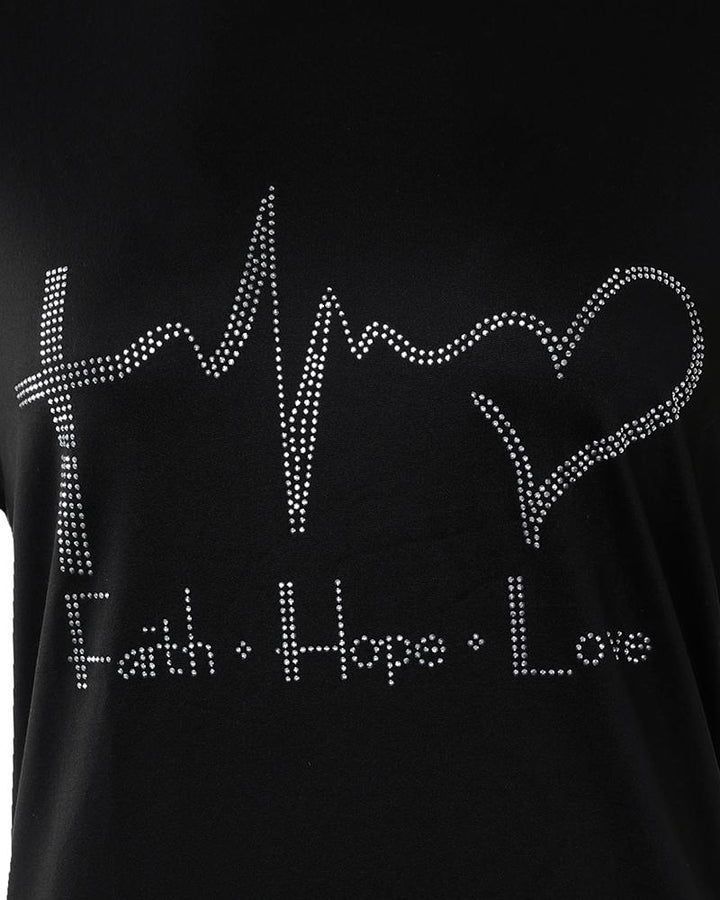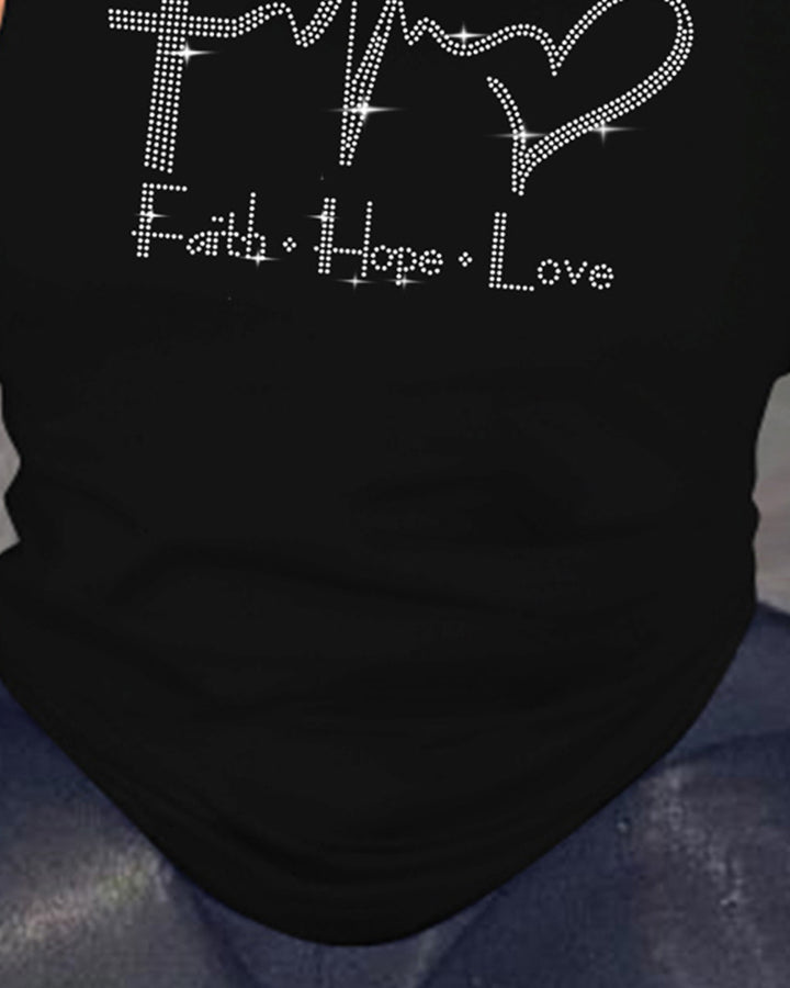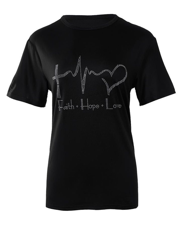 Rhinestone Letter Heart Pattern Casual T shirt