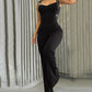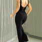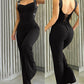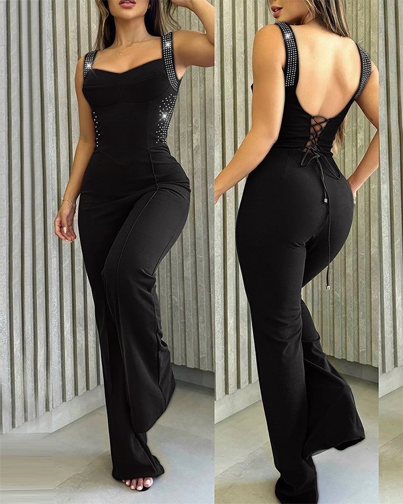 Rhinestone Sweatheart Neck Thick Strap Backless Lace up Clinch Waist Wide Pants Jumpsuit Sexy Overall