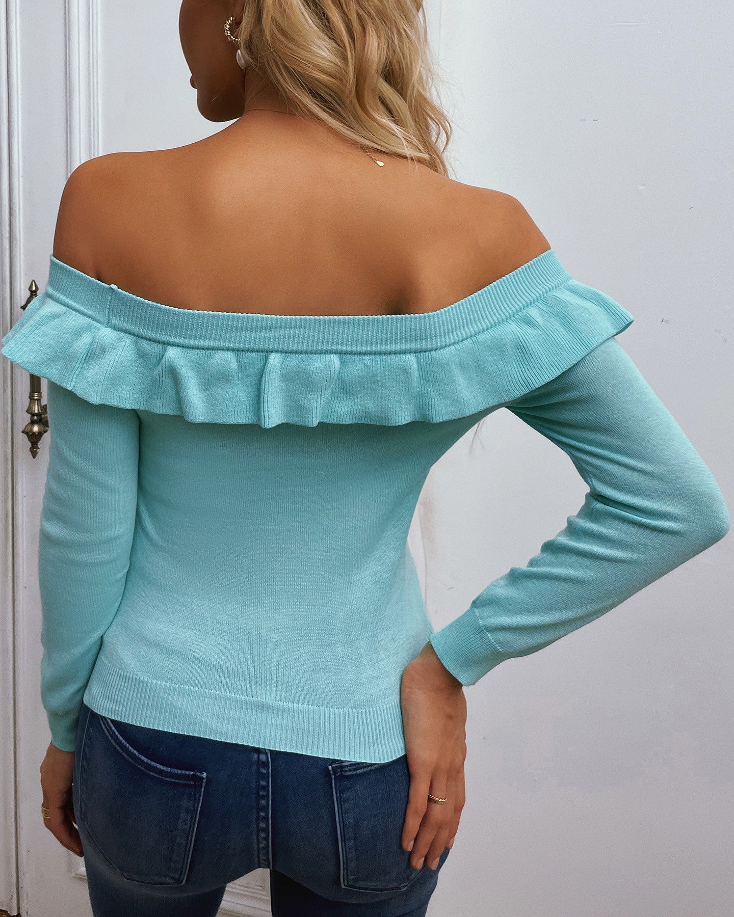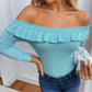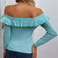 Ribbed Frill Hem Off Shoulder Sweater