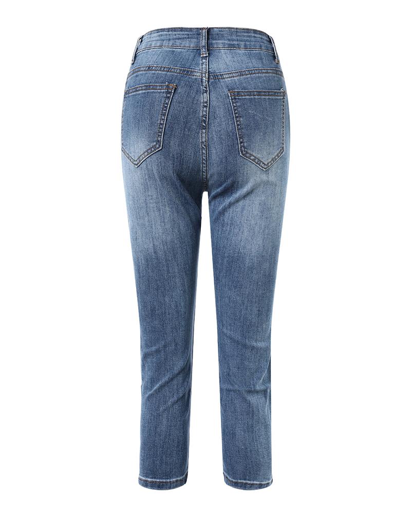 Ripped Low Waist Capris Denim Pants