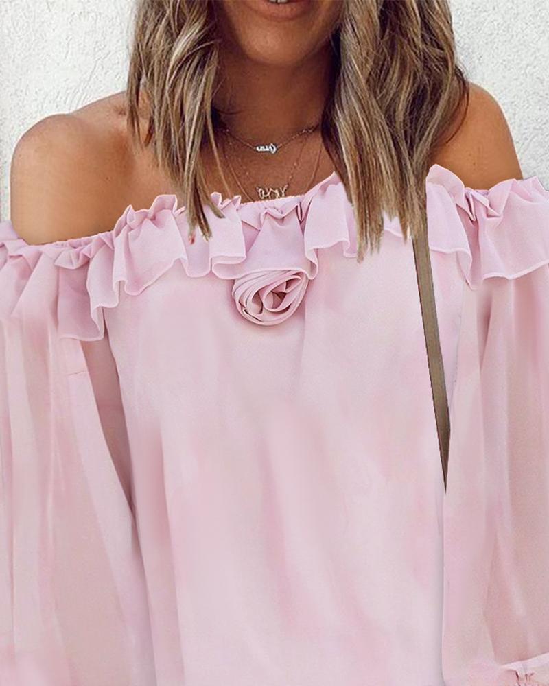 Rose Detail Ruffle Hem Off Shoulder Top