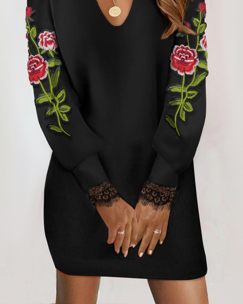 Rose Embroidery Eyelash Lace Trim Casual Dress