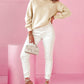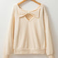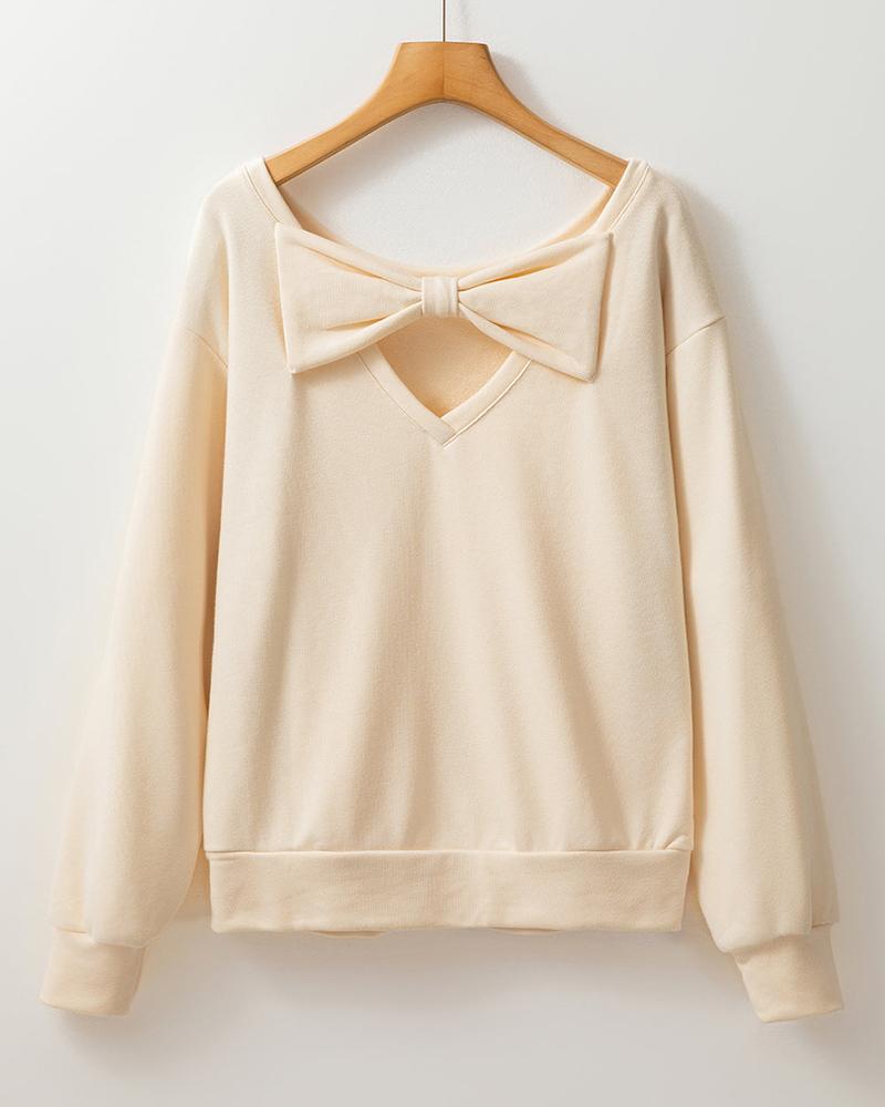 Round Neck Bowknot Decor Hollow Out Sweatshirt