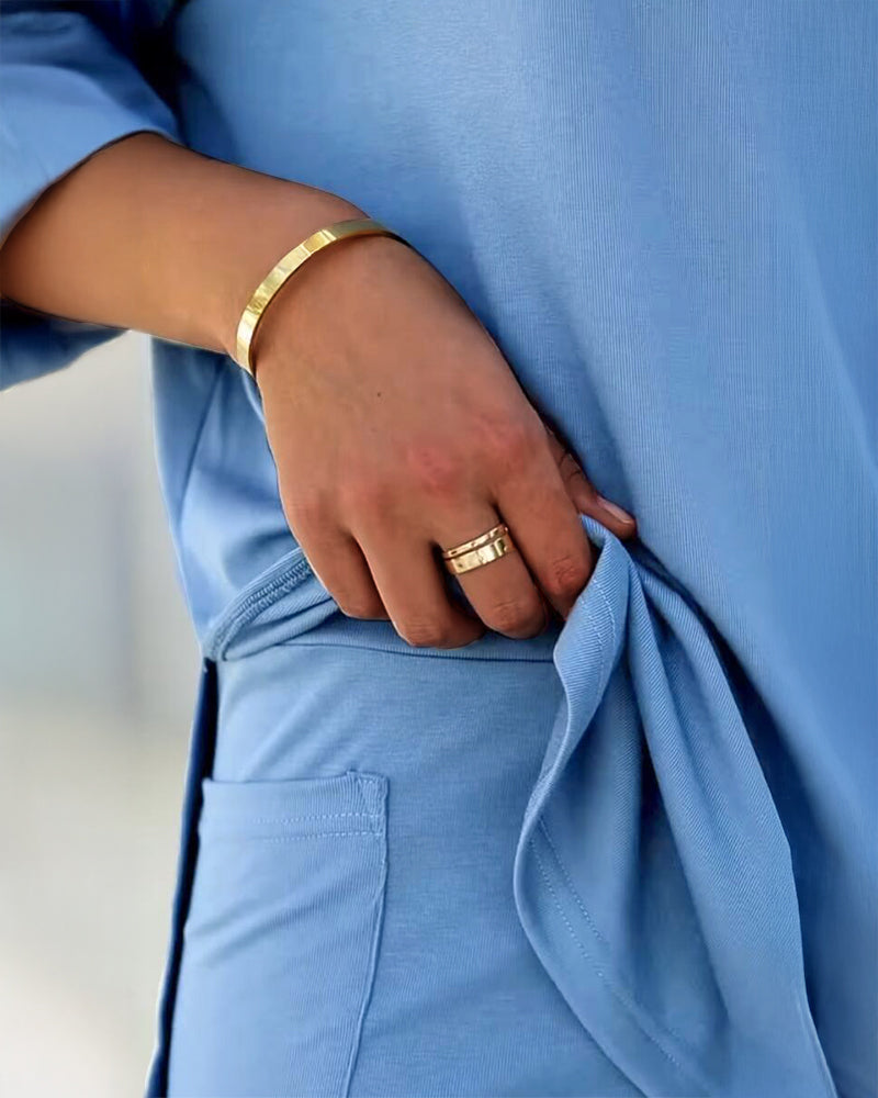 Round Neck Short Sleeve Slit Top and Casual Shorts Set with Single Pocket