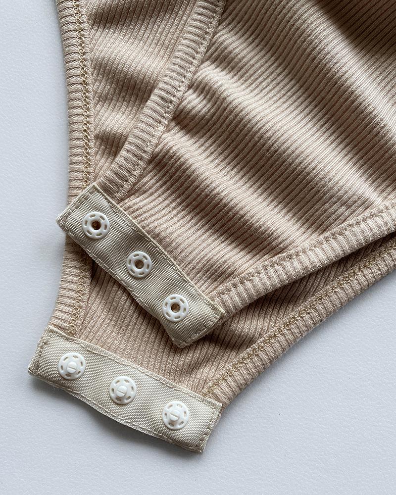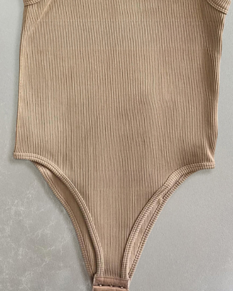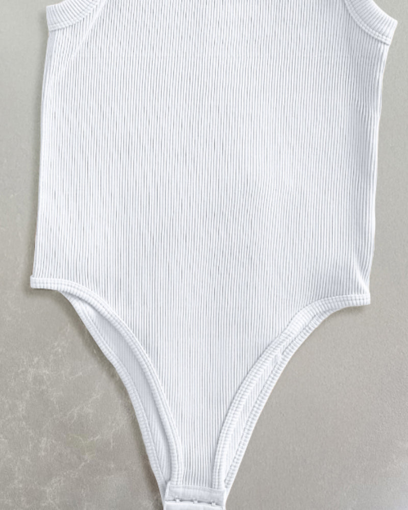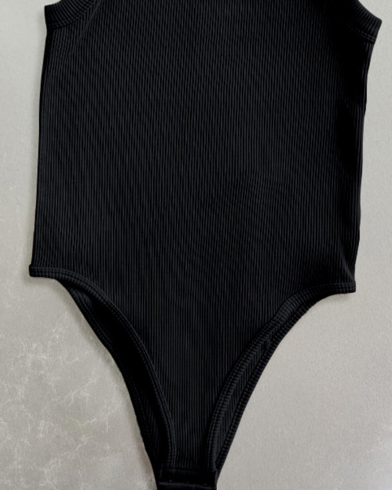 Round Neck Sleeveless Ribbed Bodysuit Casual Slim Fit Tank Top