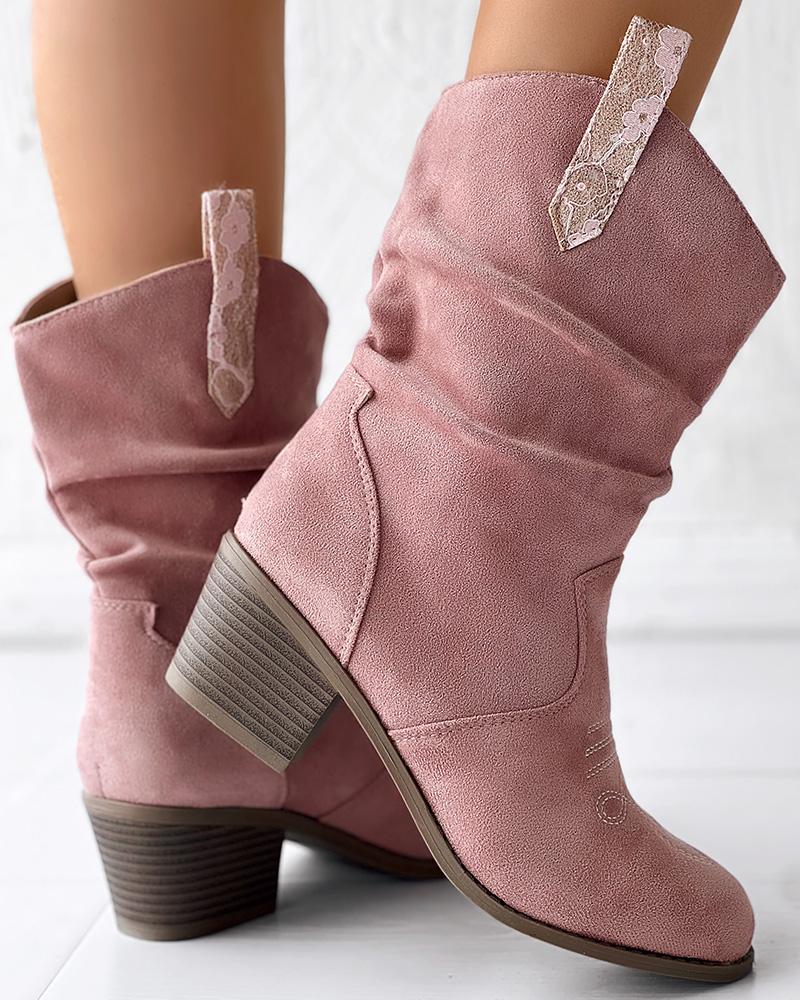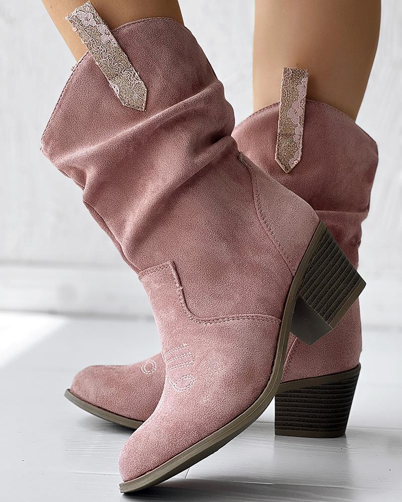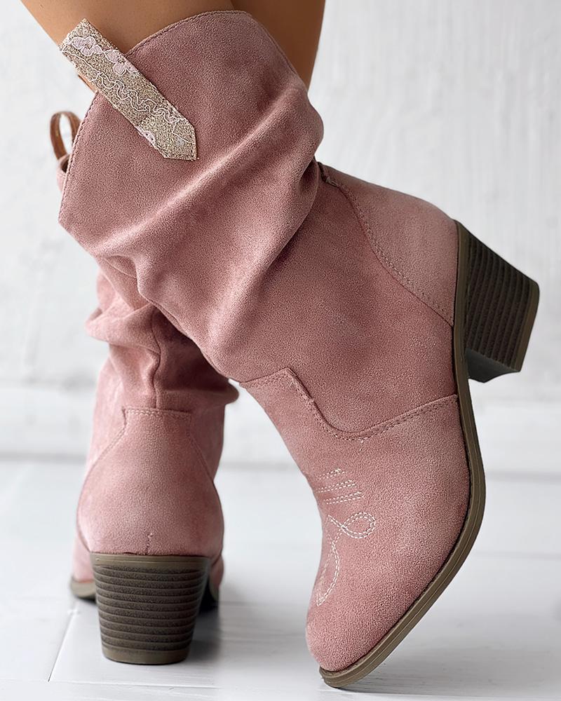 Ruched Chunky Heel Cowboy Style Vintage Ankle Boots