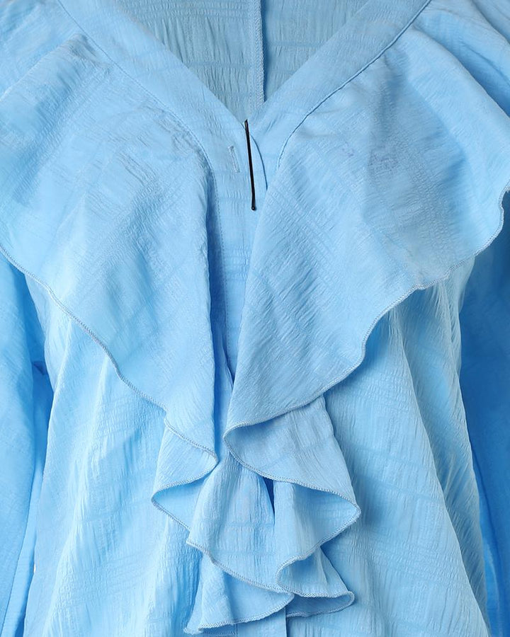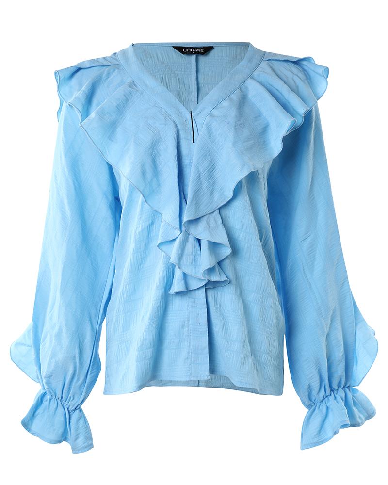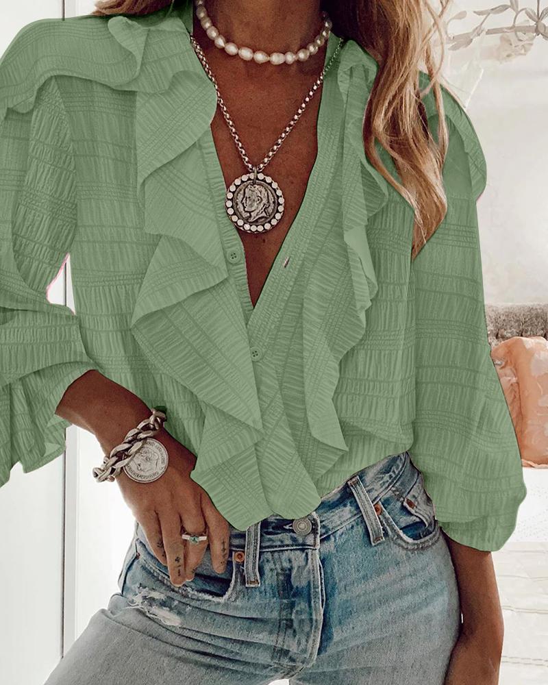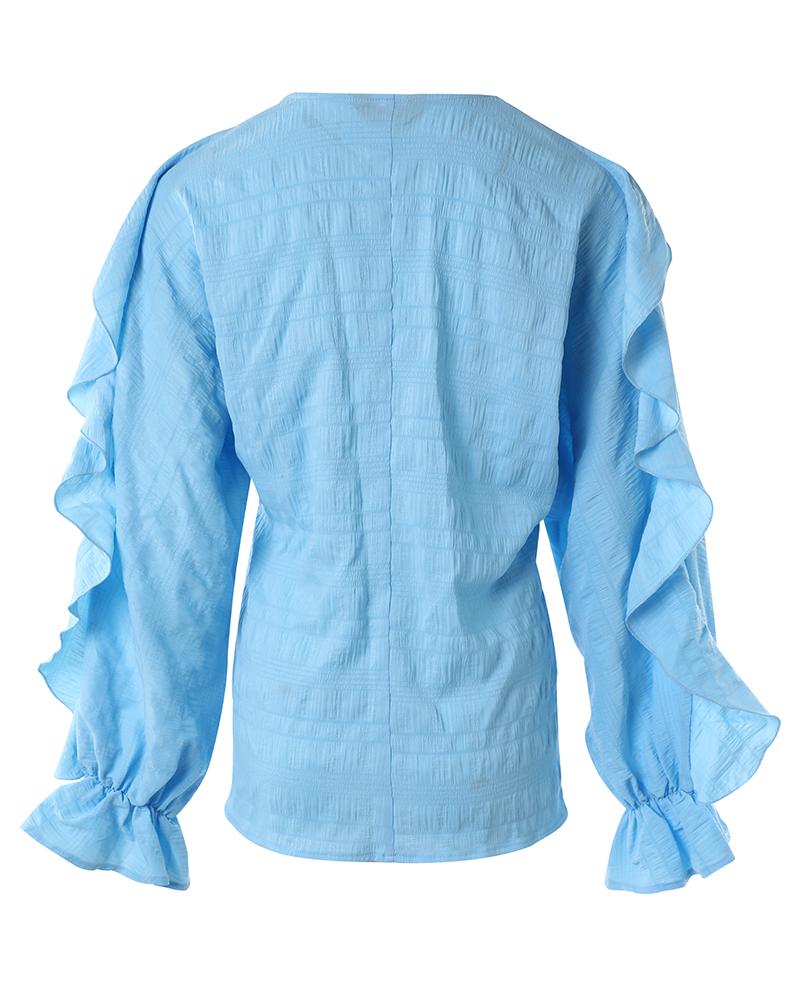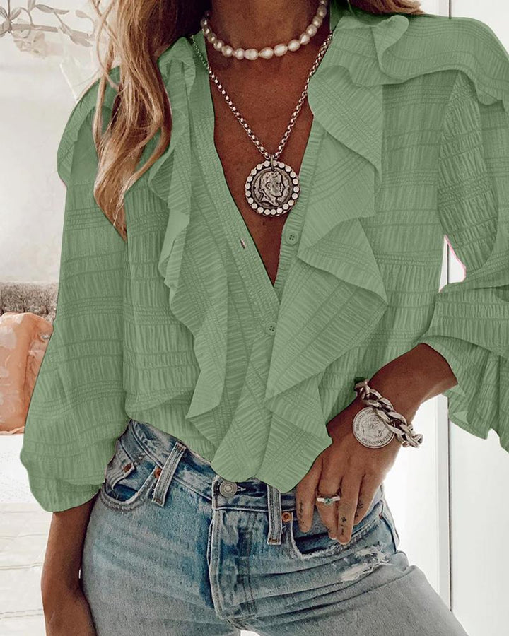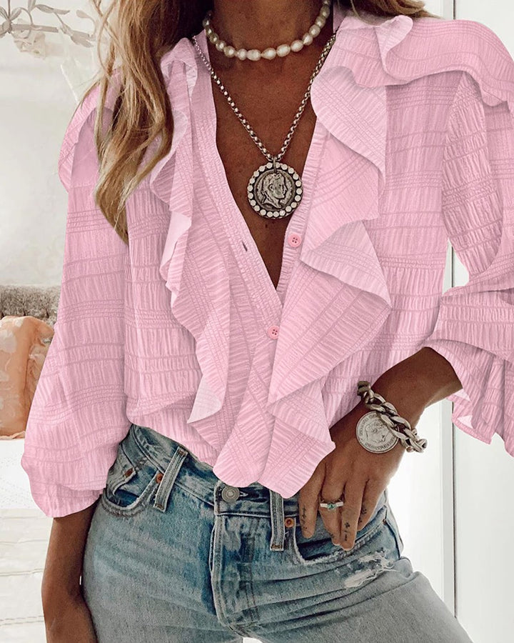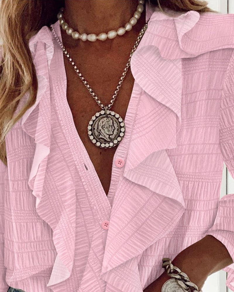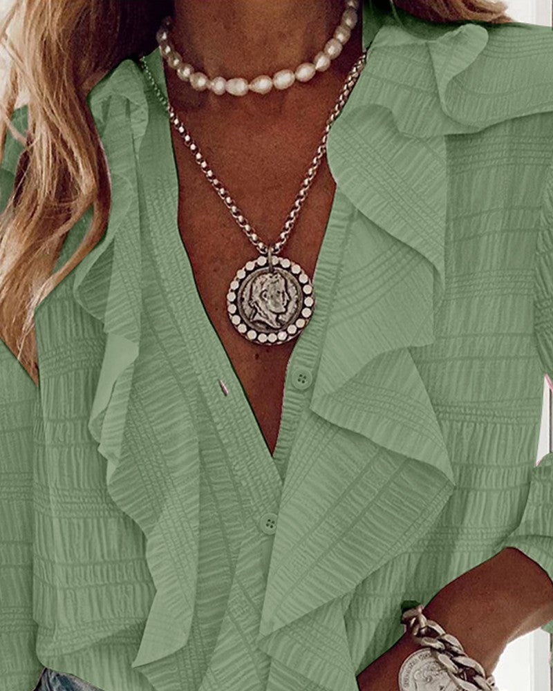 Ruffle Hem Long Sleeve Textured Blouse