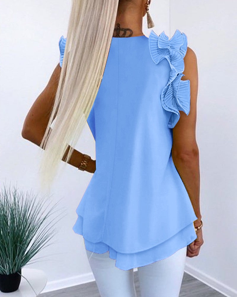 Ruffle Hem Ruched V Neck Layered Tank Top