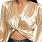 Satin Ruched Rhinestone Decor Twisted Top