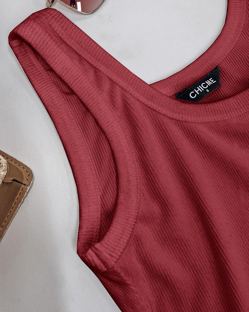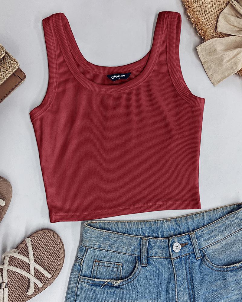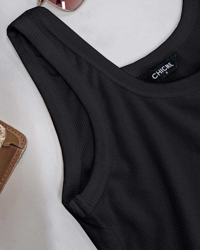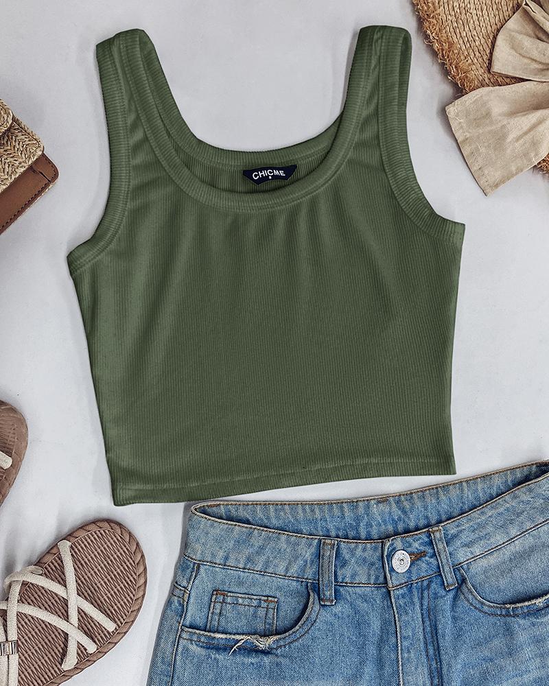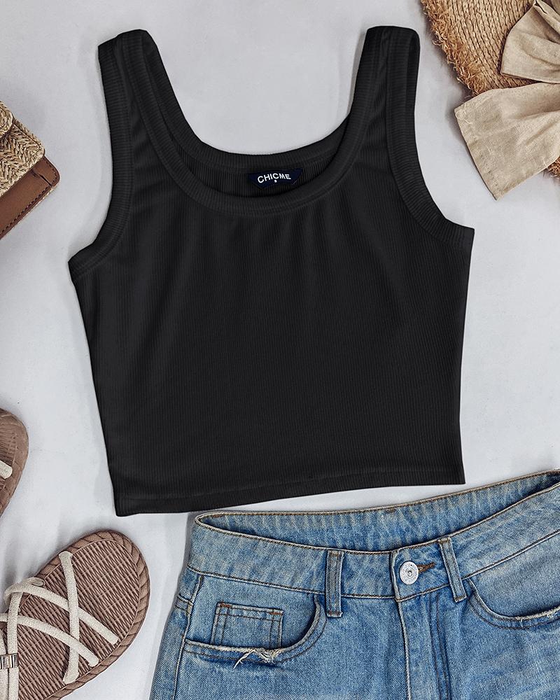 Scoop Neck Sleeveless Ribbed Tank Top Cami Tee Shirts