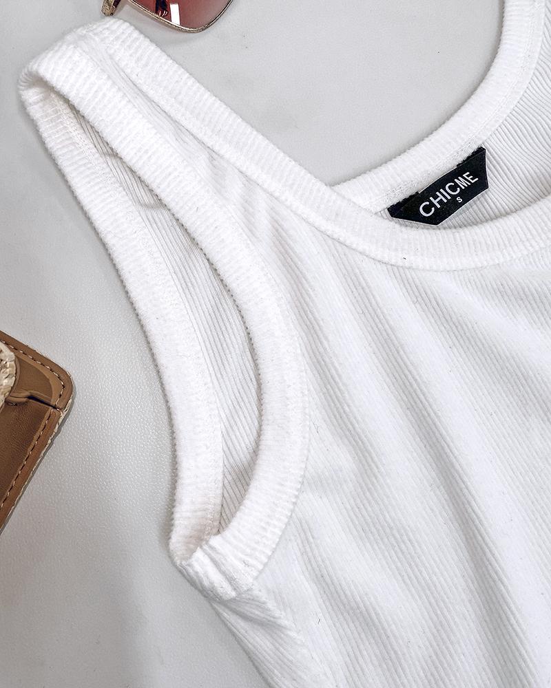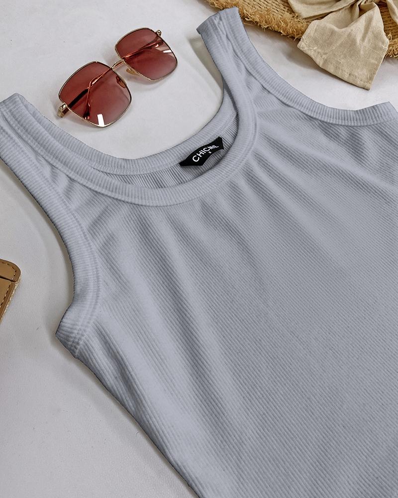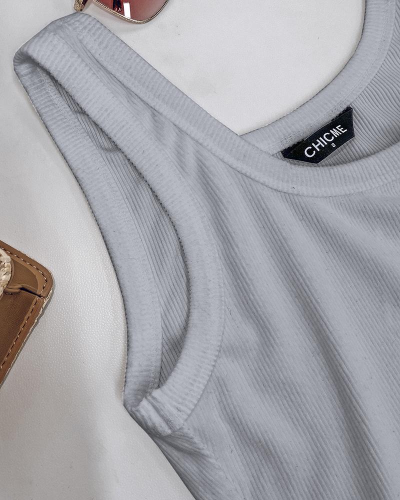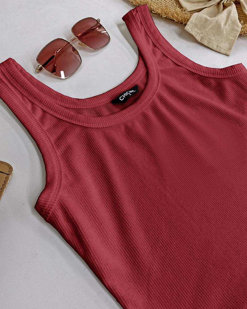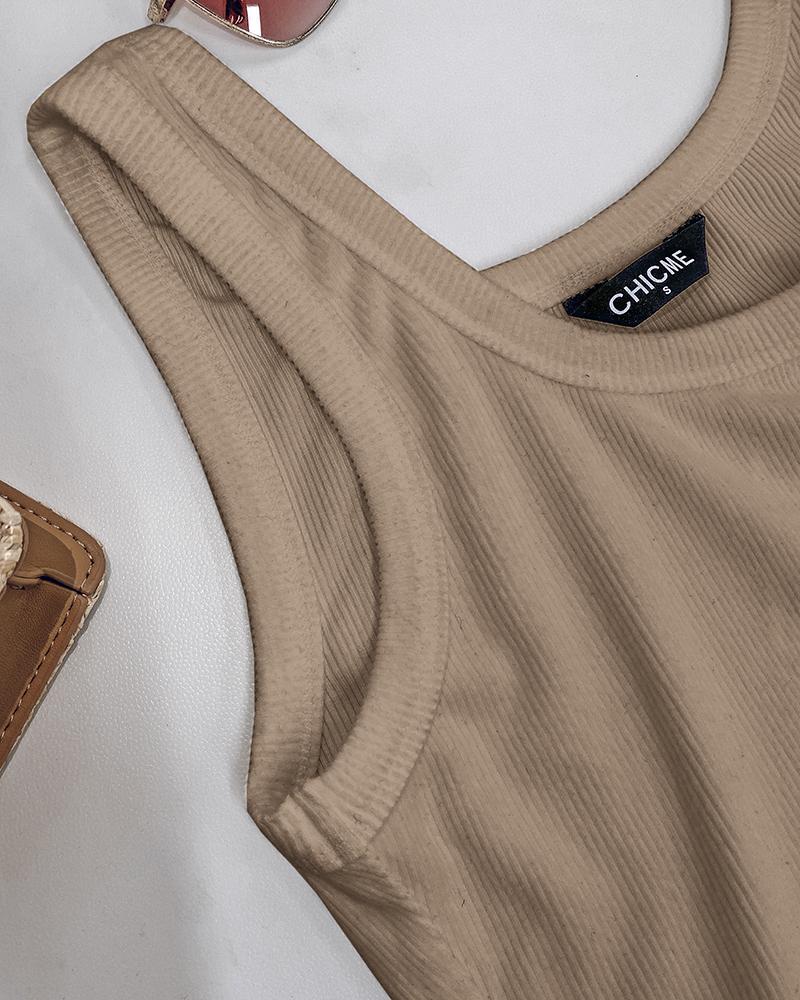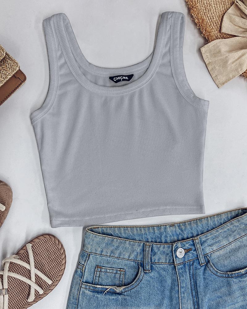 Scoop Neck Sleeveless Ribbed Tank Top Cami Tee Shirts