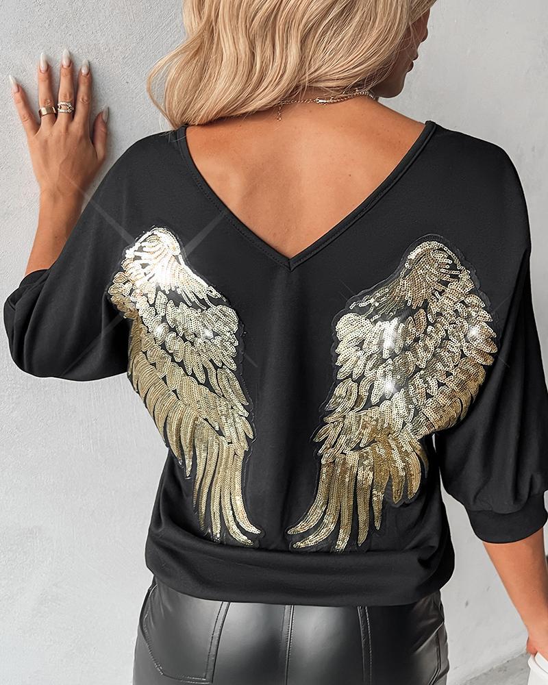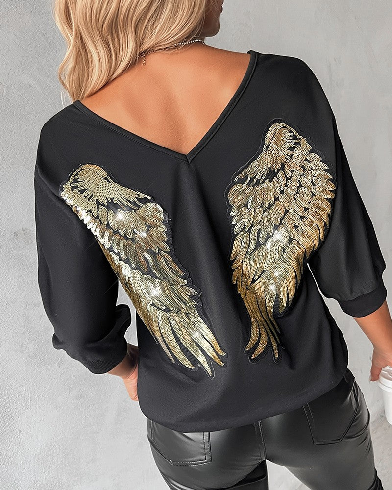 Sequin Angel Wings Long Sleeve Sweatshirt
