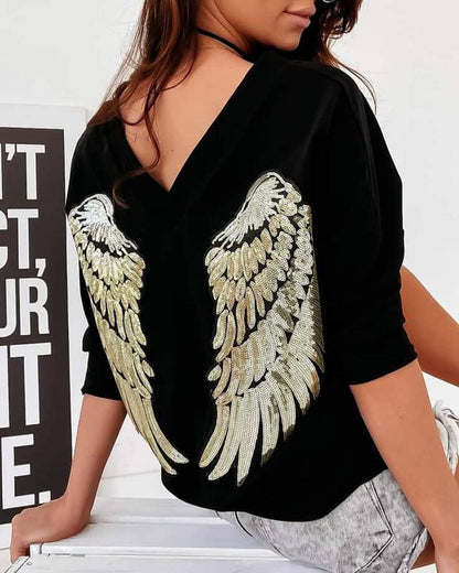 Sequin Angel Wings Long Sleeve Sweatshirt