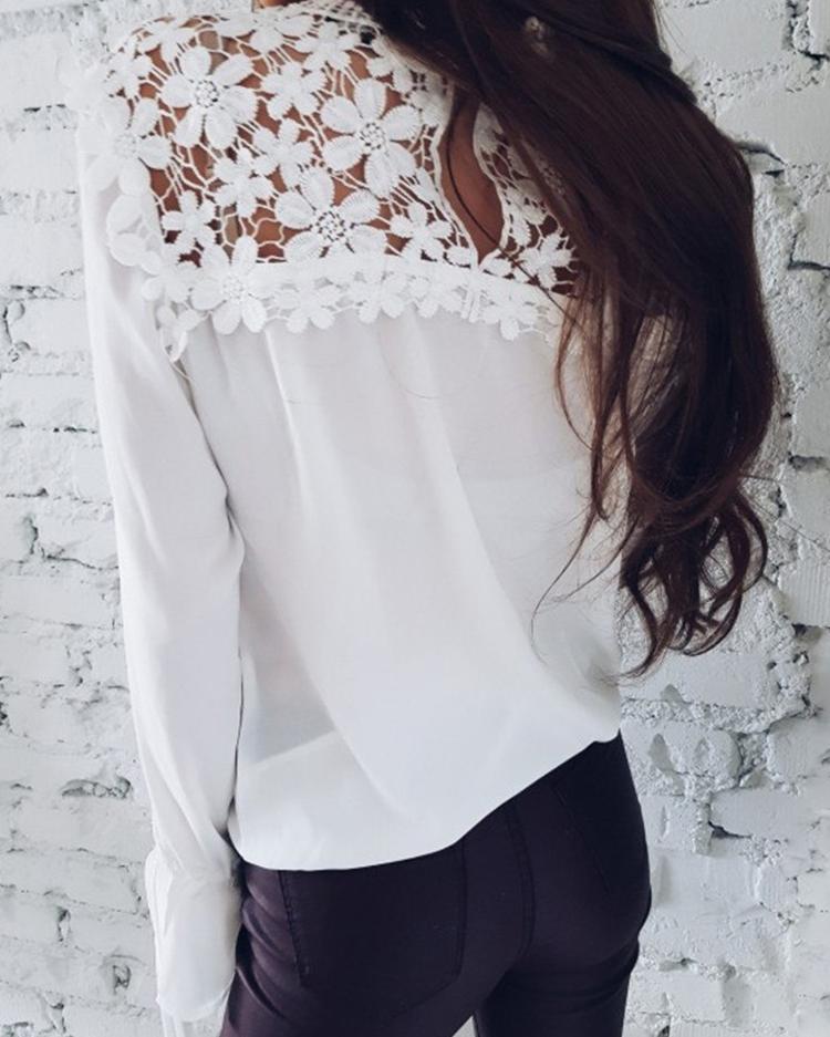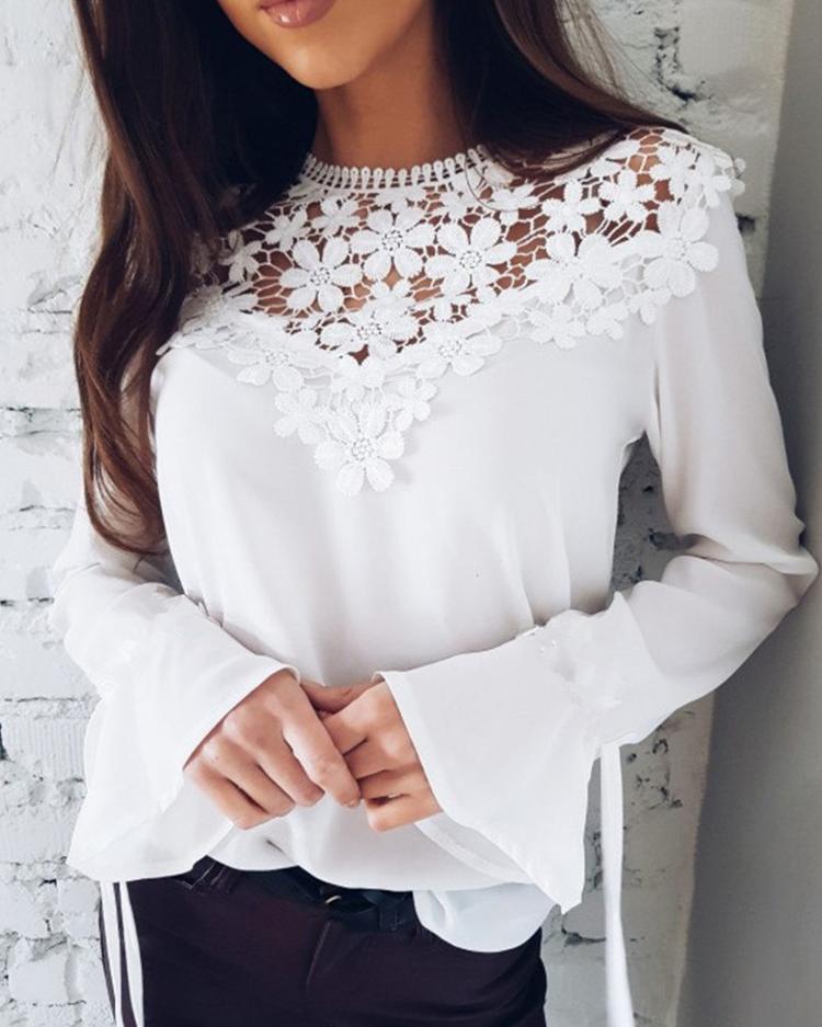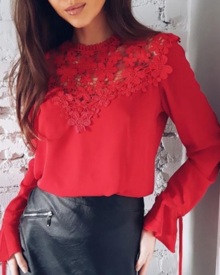 Sexy Flare Sleeve Lace Patchwork Blouse
