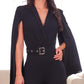 Shawl Collor Cape Sleeve Crisscross Jumpsuit with Belt Casual Overalls
