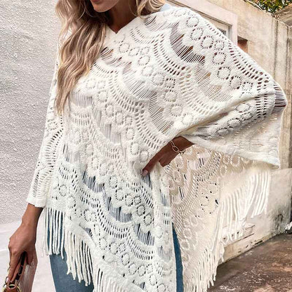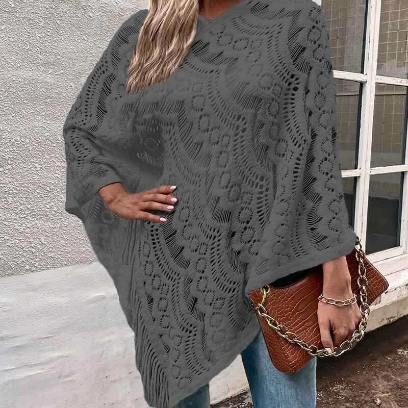 Knit Shawl Wrap for Women - Soul Young Ladies Fringe Knitted Poncho Cardigan Cape K382
