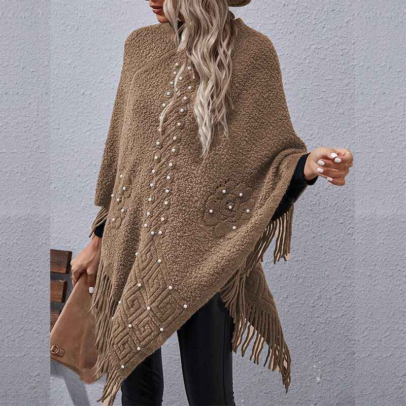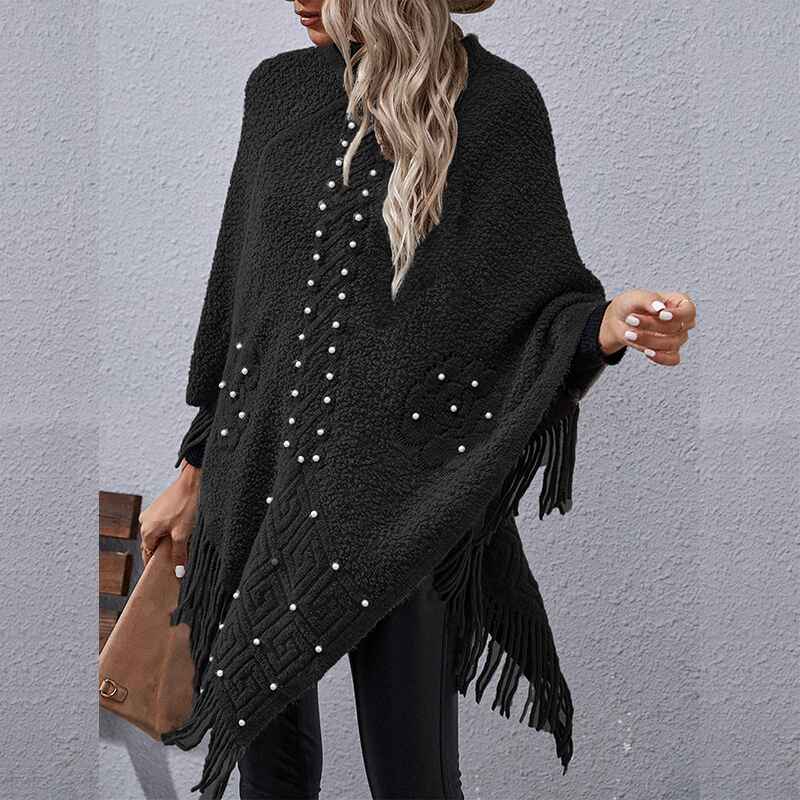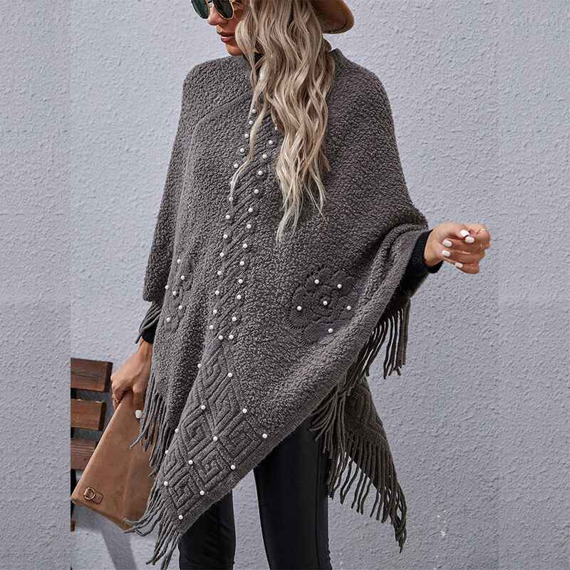 Women's Fall Winter Turtleneck Poncho Sweater Fashion Chunky Knit Cape Wrap Sweaters Pullover Jumper Tops K384