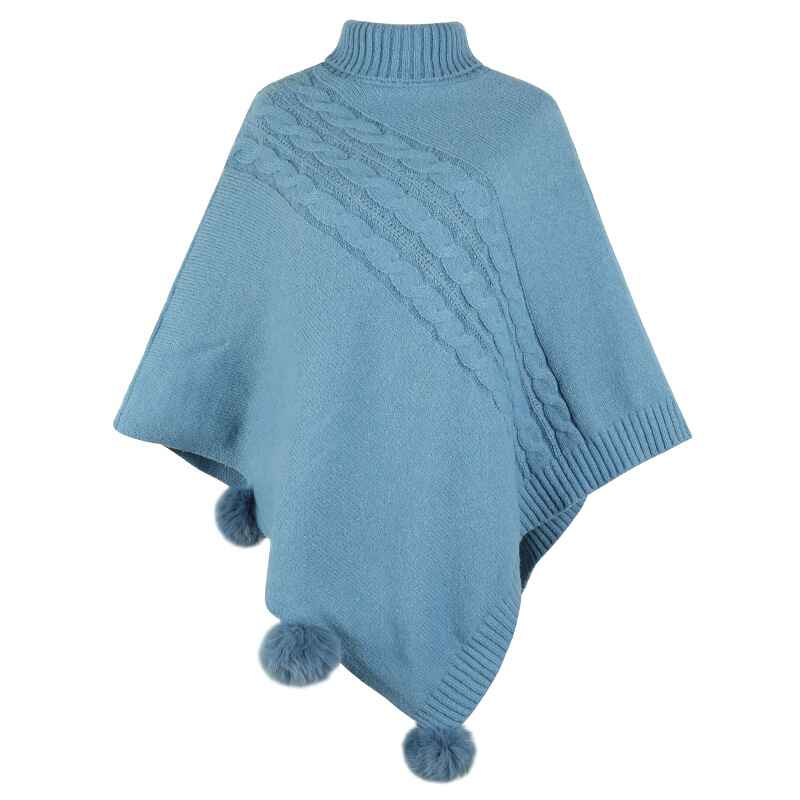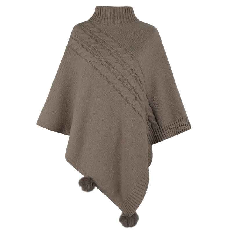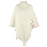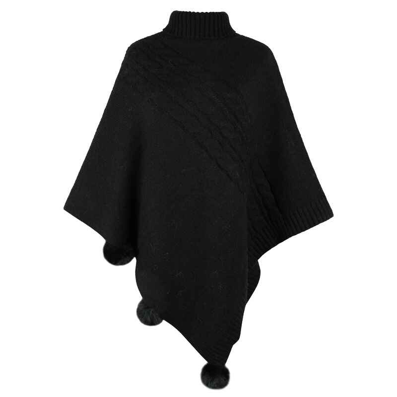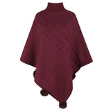 Women's-Turtleneck Poncho Sweater Cape Knit Pullover Solid Sweaters K440