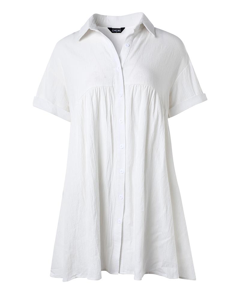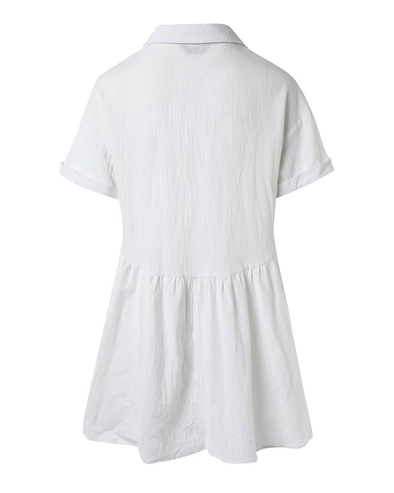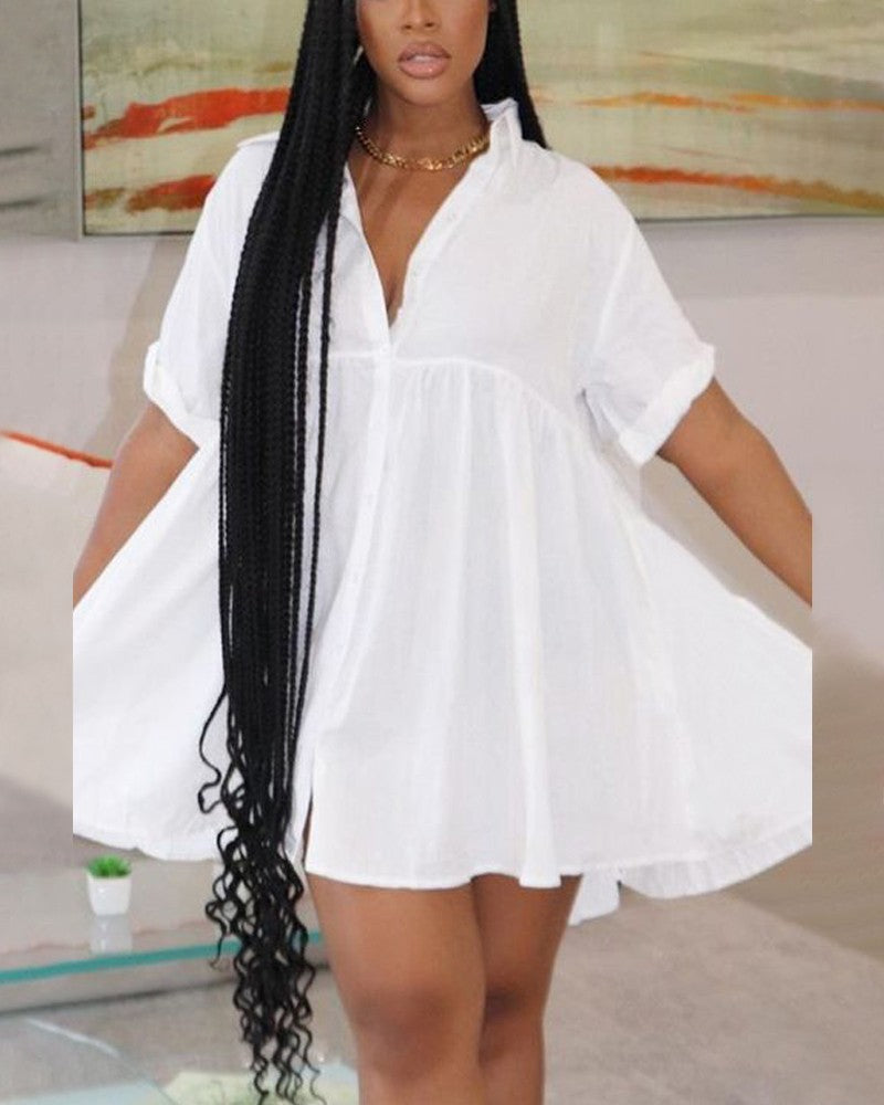 Short Sleeve Ruffles Buttoned Shirt Dress