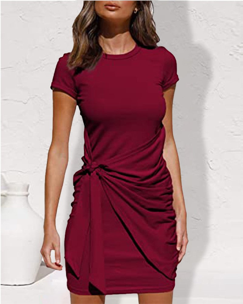 Short Sleeve Tied Detail Casual Dress