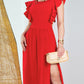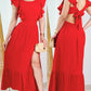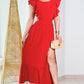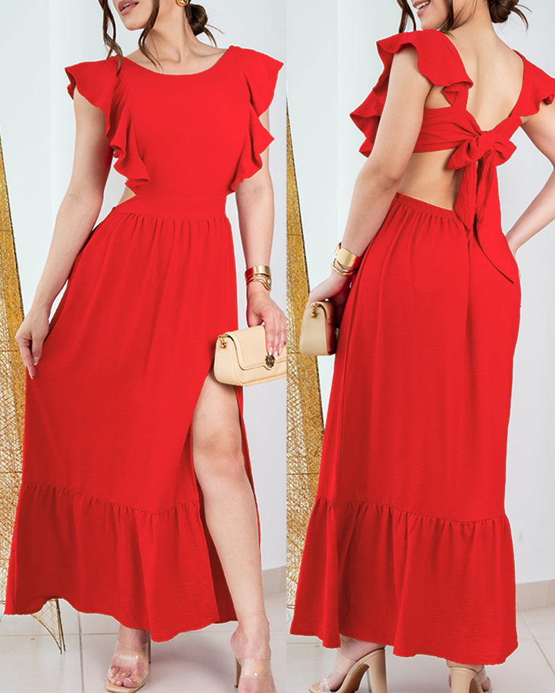 Shoulder Frill Hem Backless Tied Detail Midi Dress Sexy High Slit A Line Dress