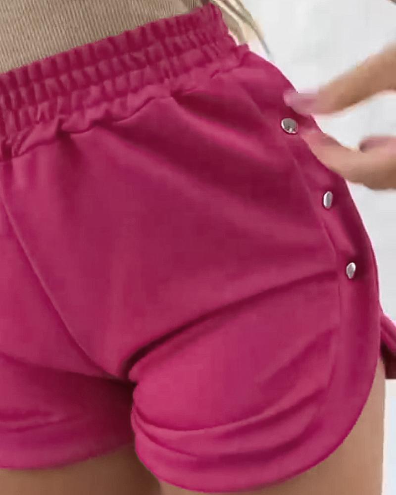 Side Metal Button Slit Active Shorts Casual Strechy Waist Sports Shorts