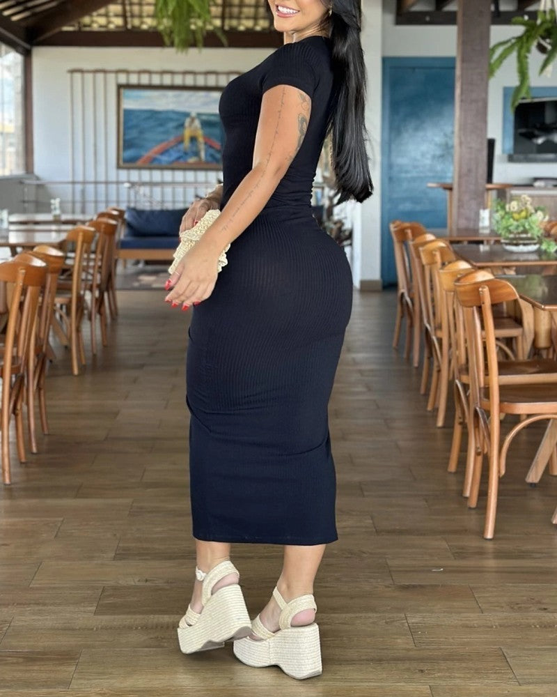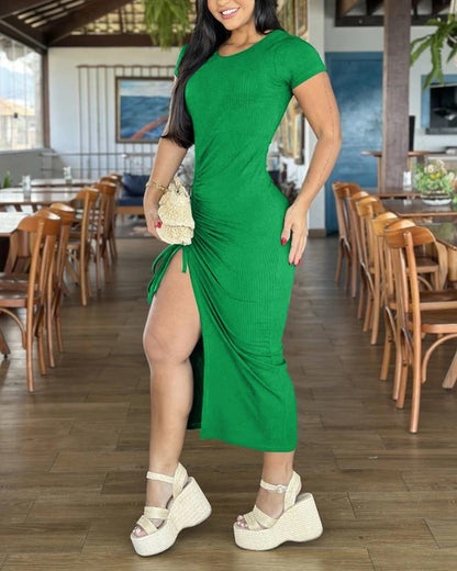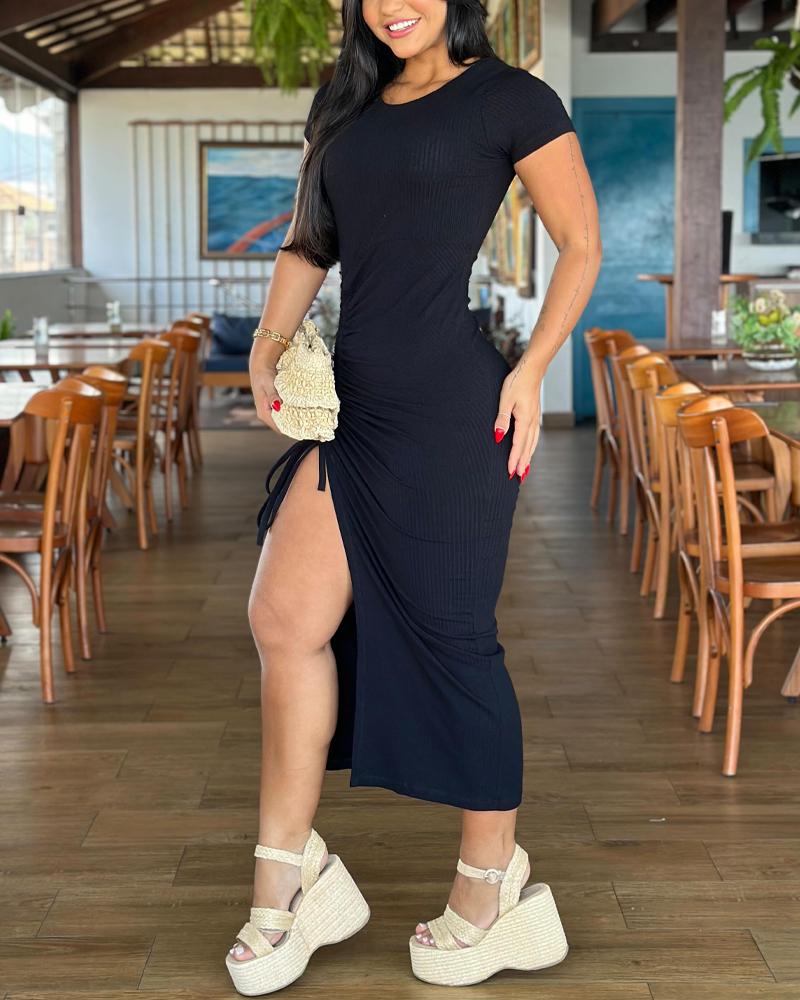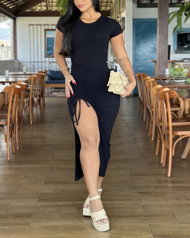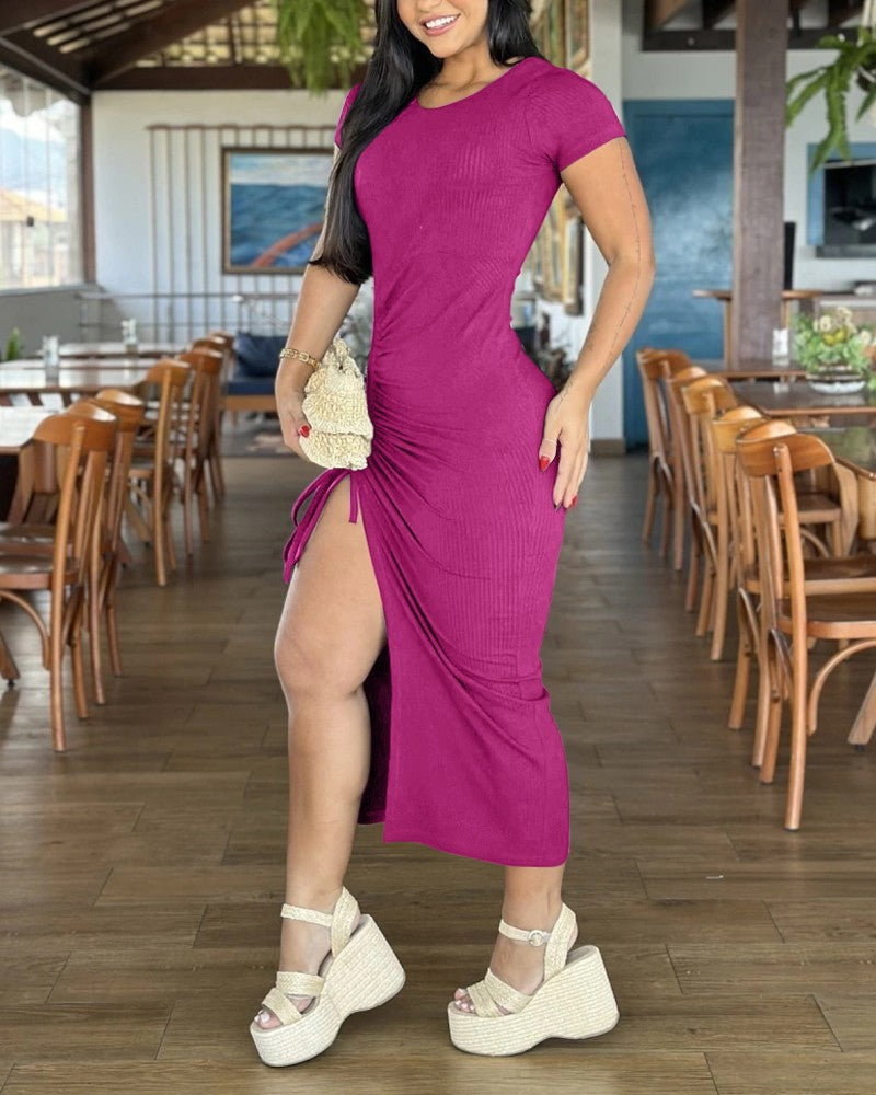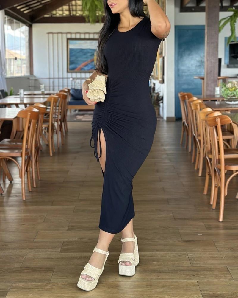 Side Slit Drawstring Bodycon Dress