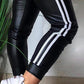 Side Striped Panels PU Leather Cuffed Pants Casual Pants
