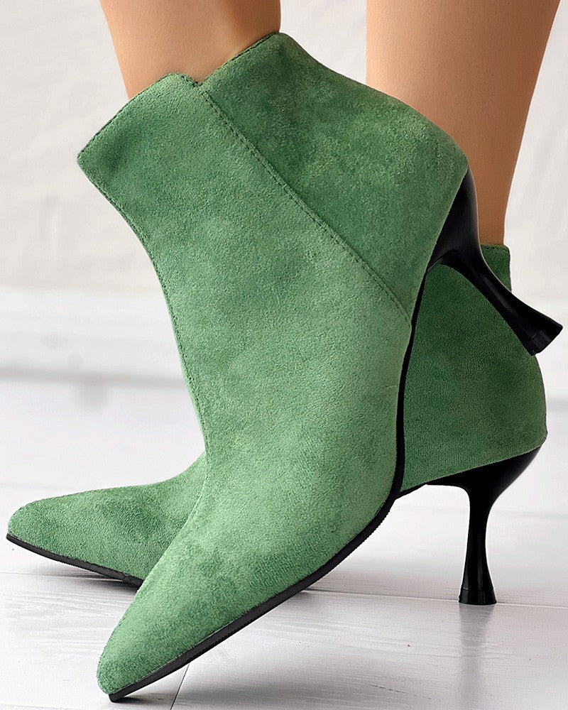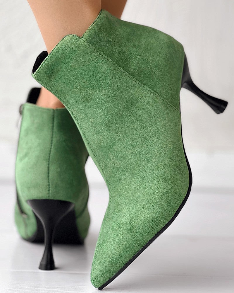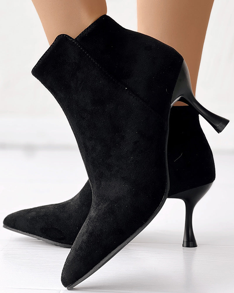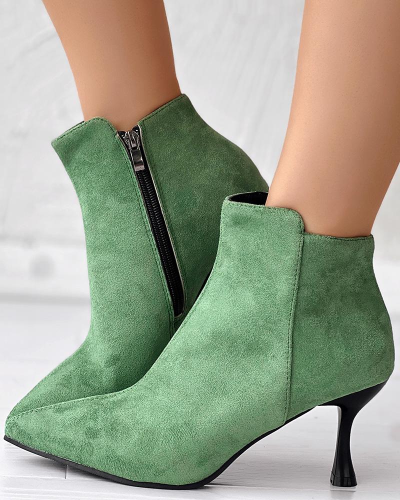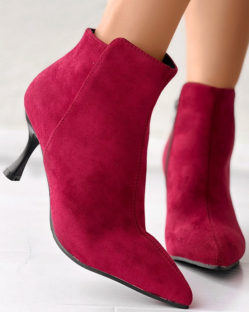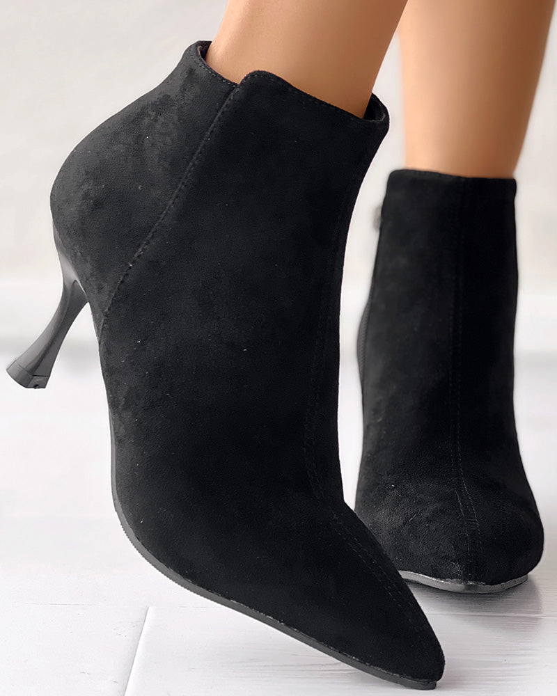 Side Zipper Pyramid Heel Ankle Boots