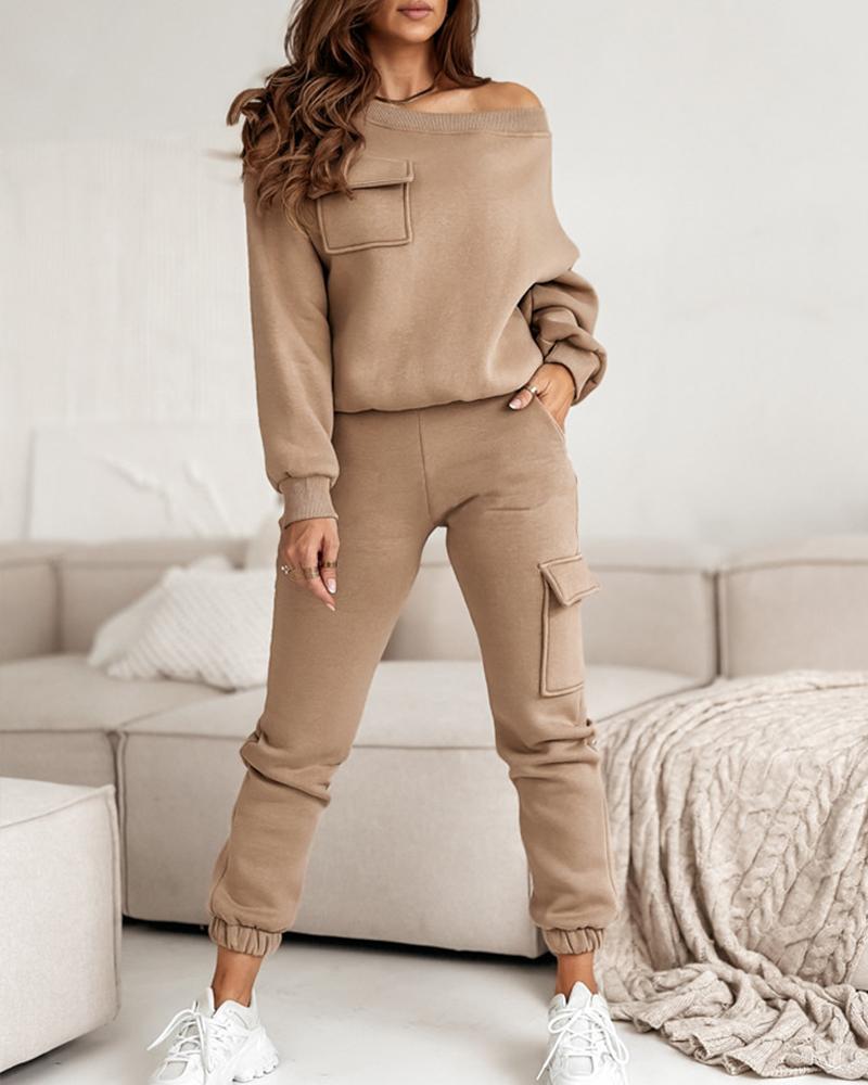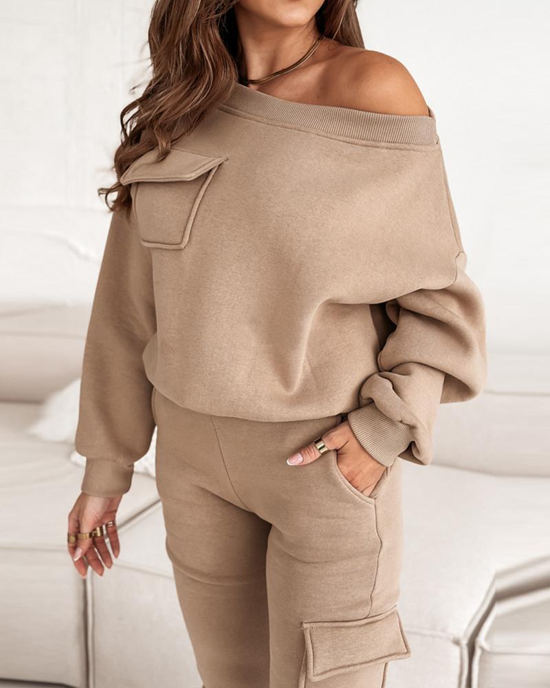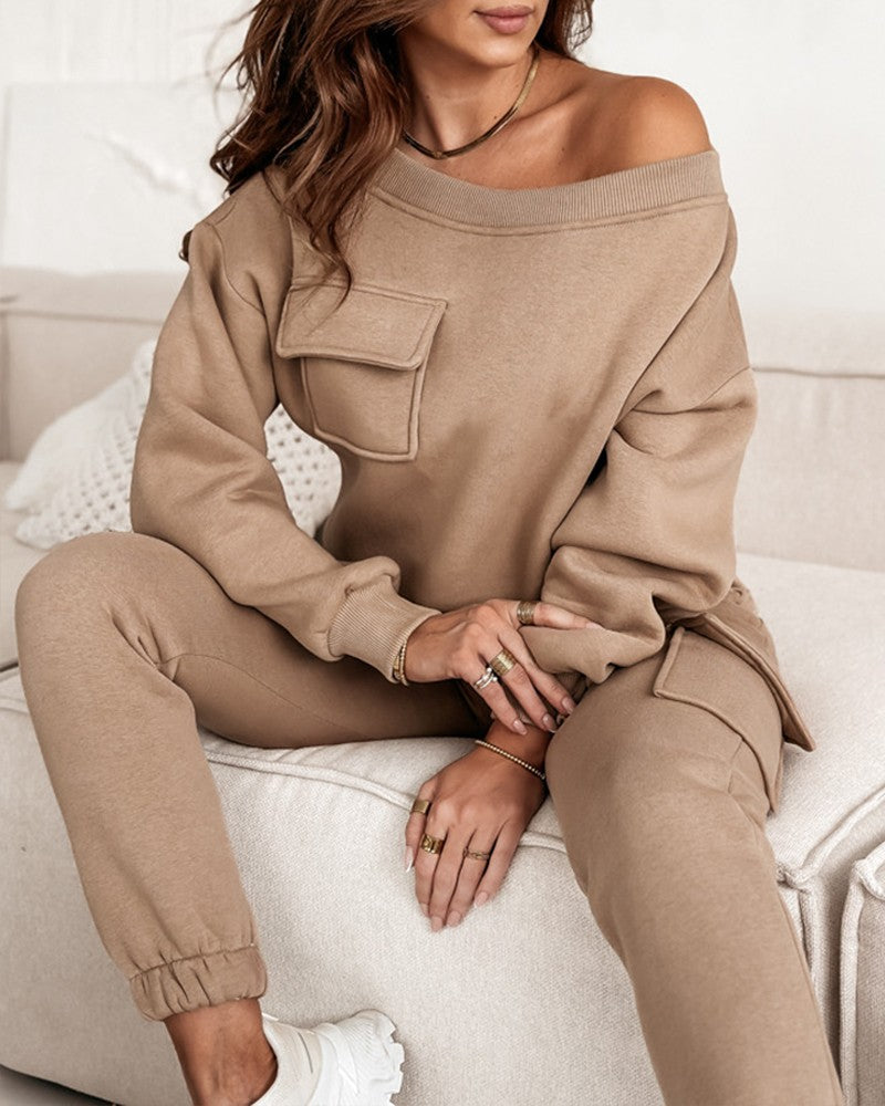 Skew Neck Sweatshirt & Cuffed Sweatpants Set