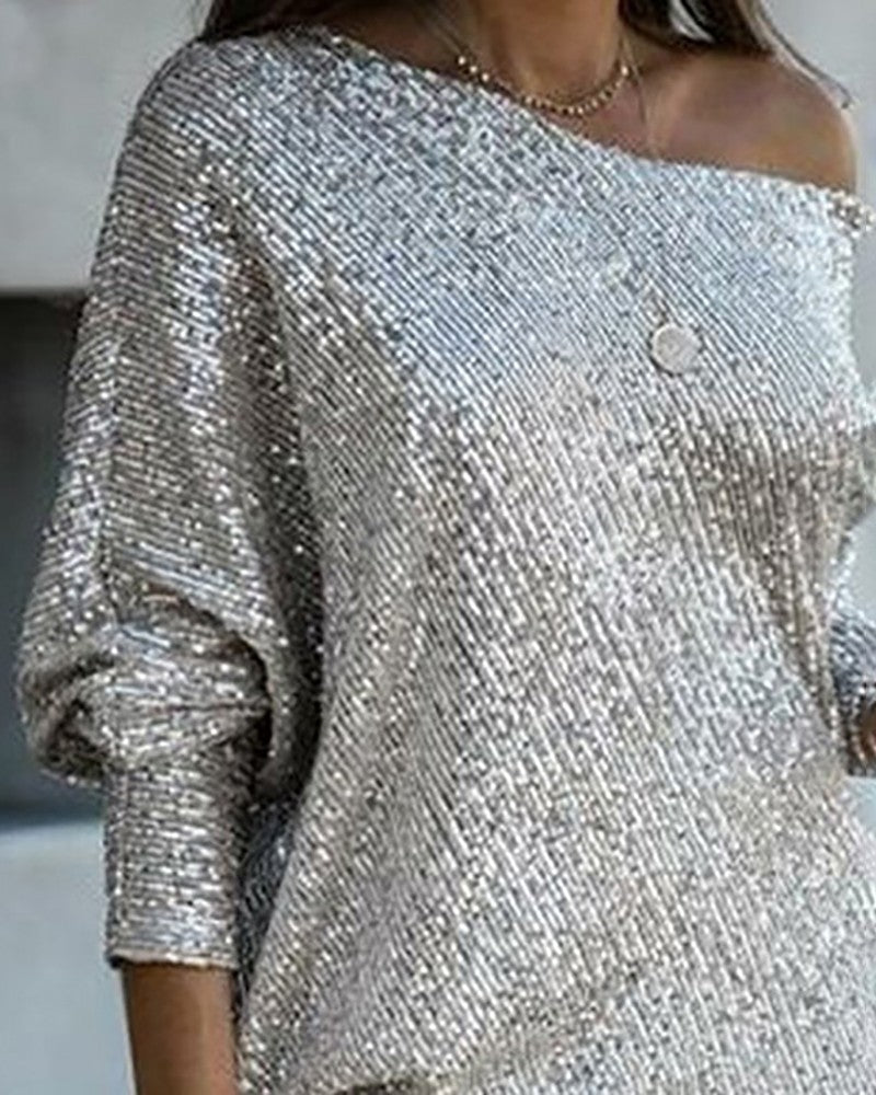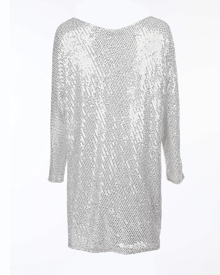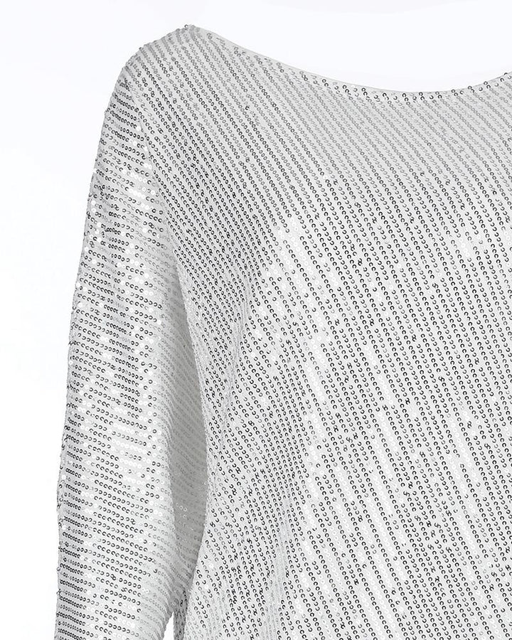 Slash Neck Batwing Sleeve Allover Sequins Dress