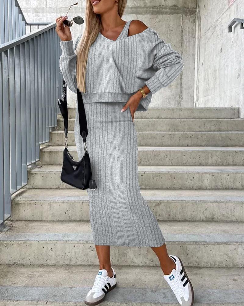 Sleeveless Dress & V Neck Long Sleeve Top Set