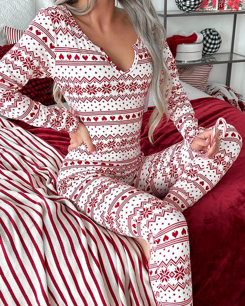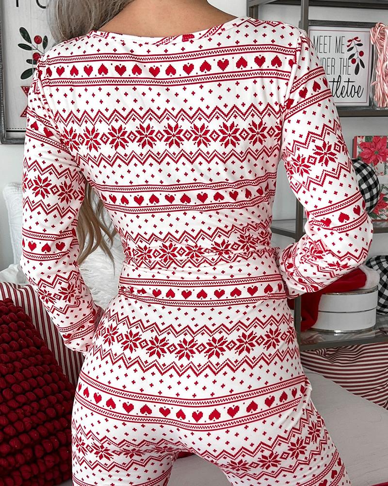 Snowflake Fair Isle Print Long Sleeve Sleep Onesie