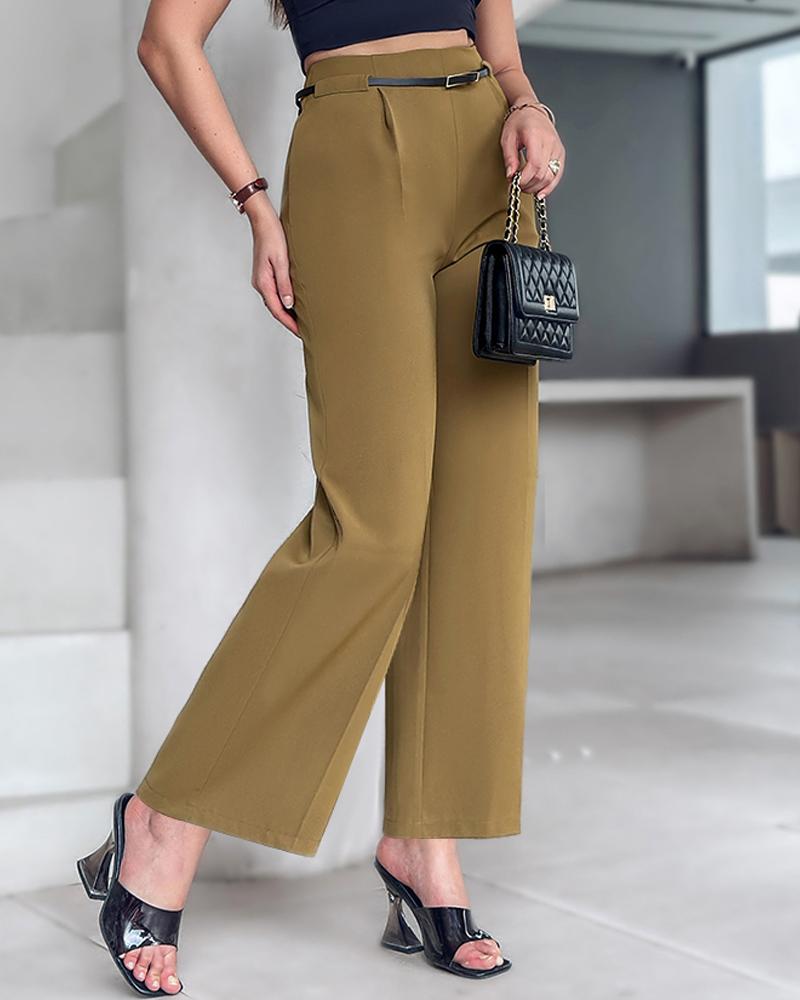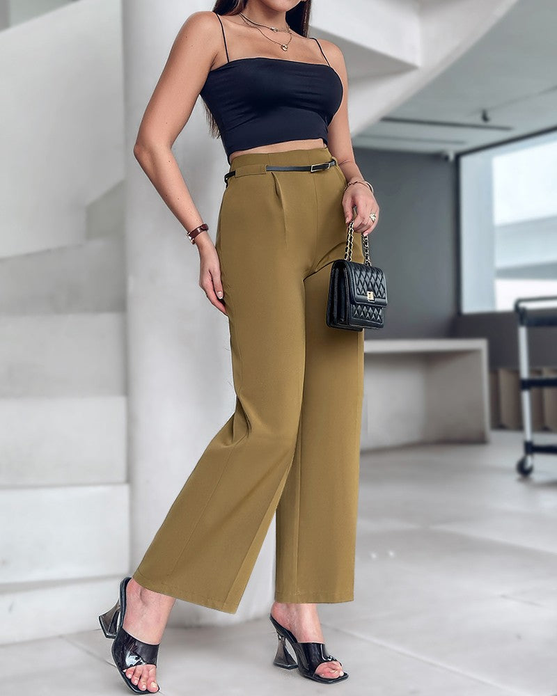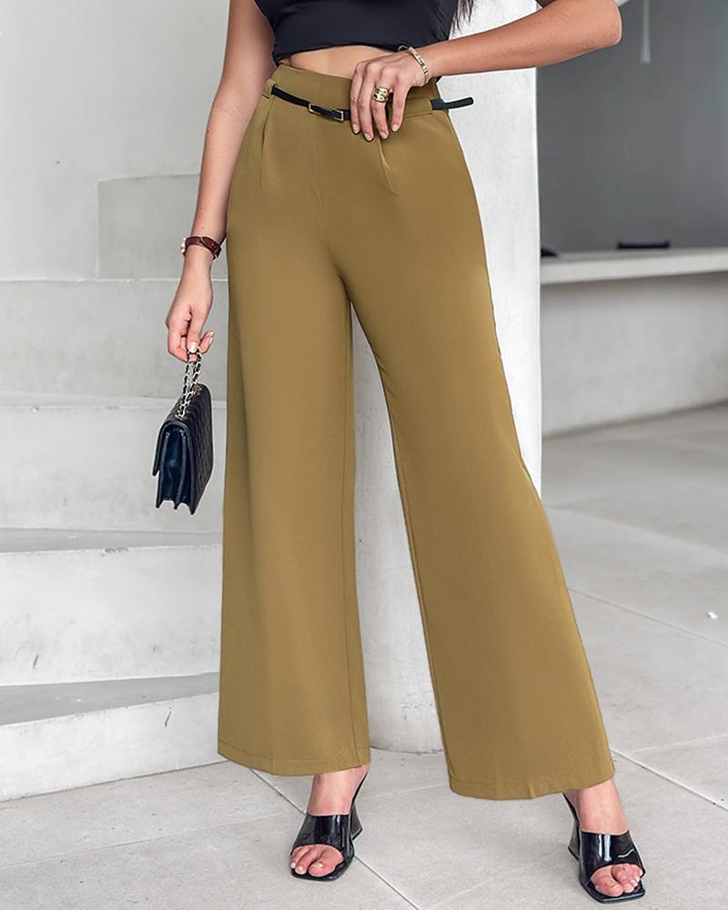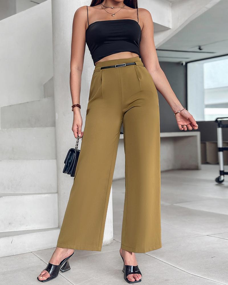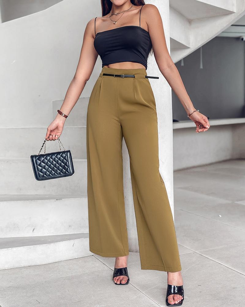 Solid High Waist Wide Leg Pants With Belt