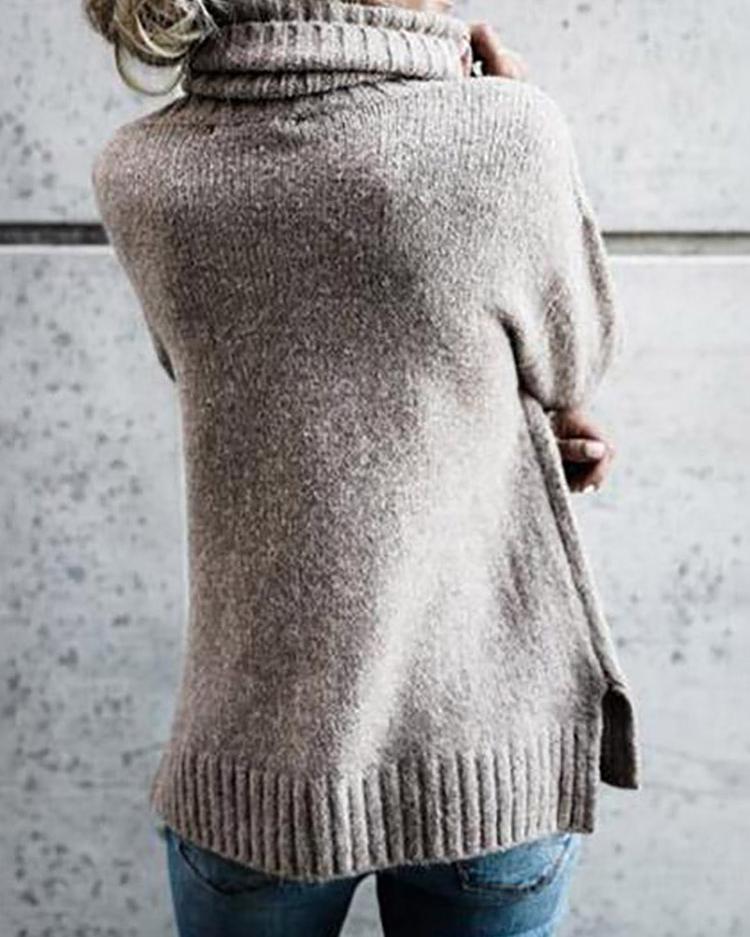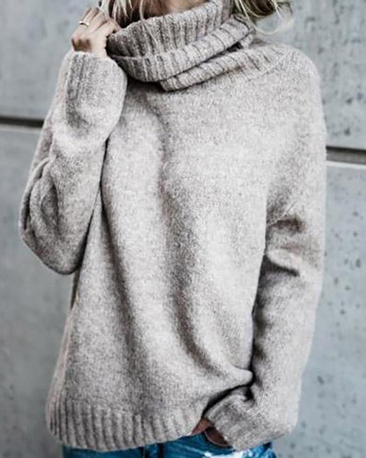 Solid Roll Neck Pullover Sweater