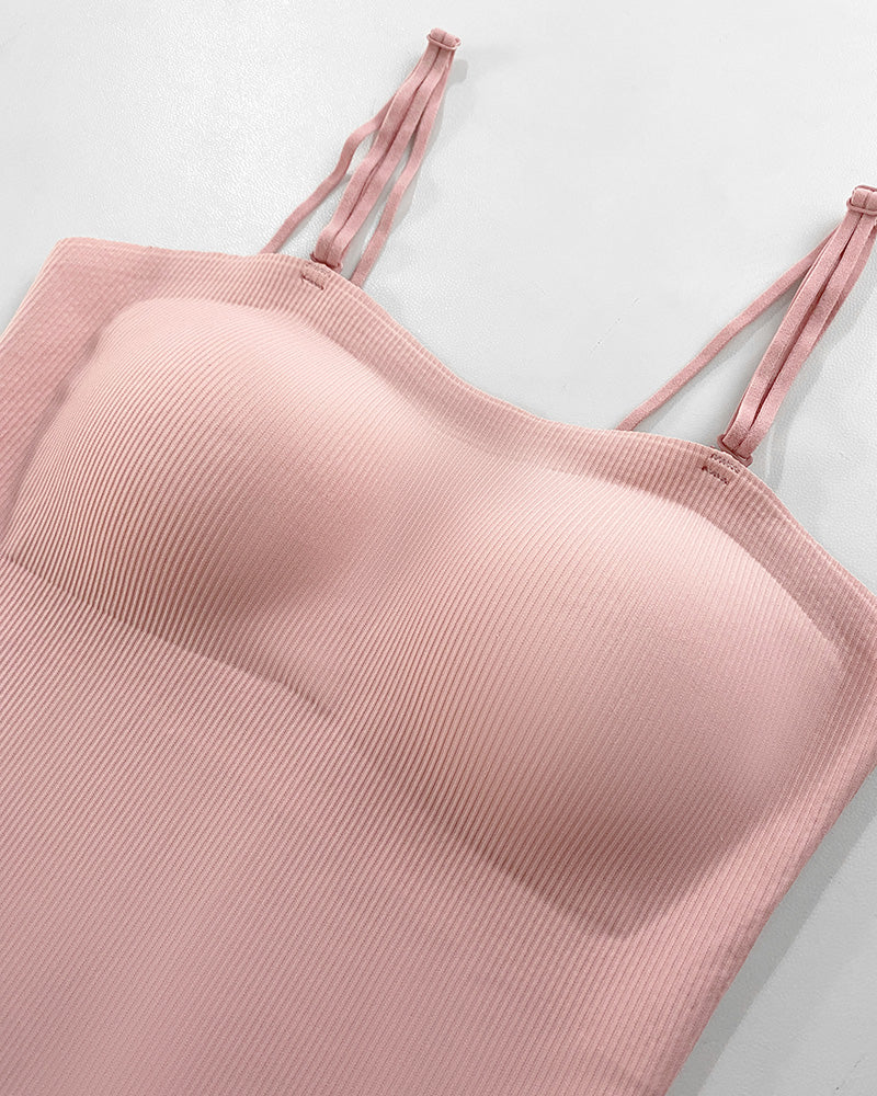 Spaghetti Strap Built in Bra Slim Fit Tank Top Sexy Back Criss Cross Workout Camisole Tops