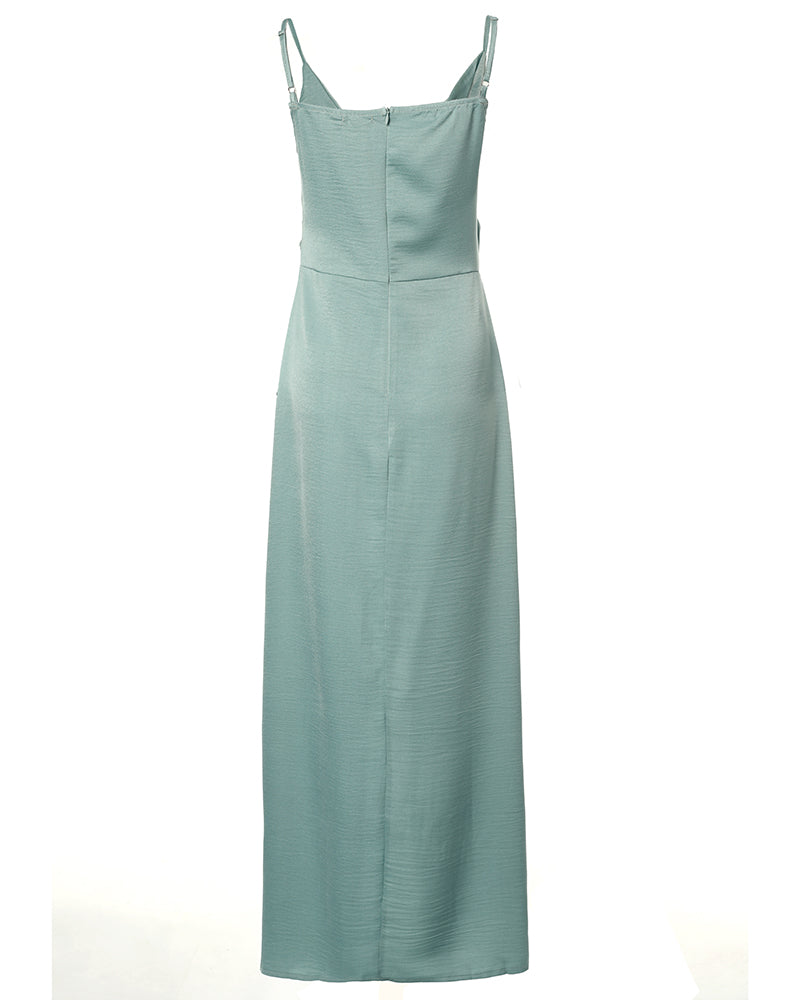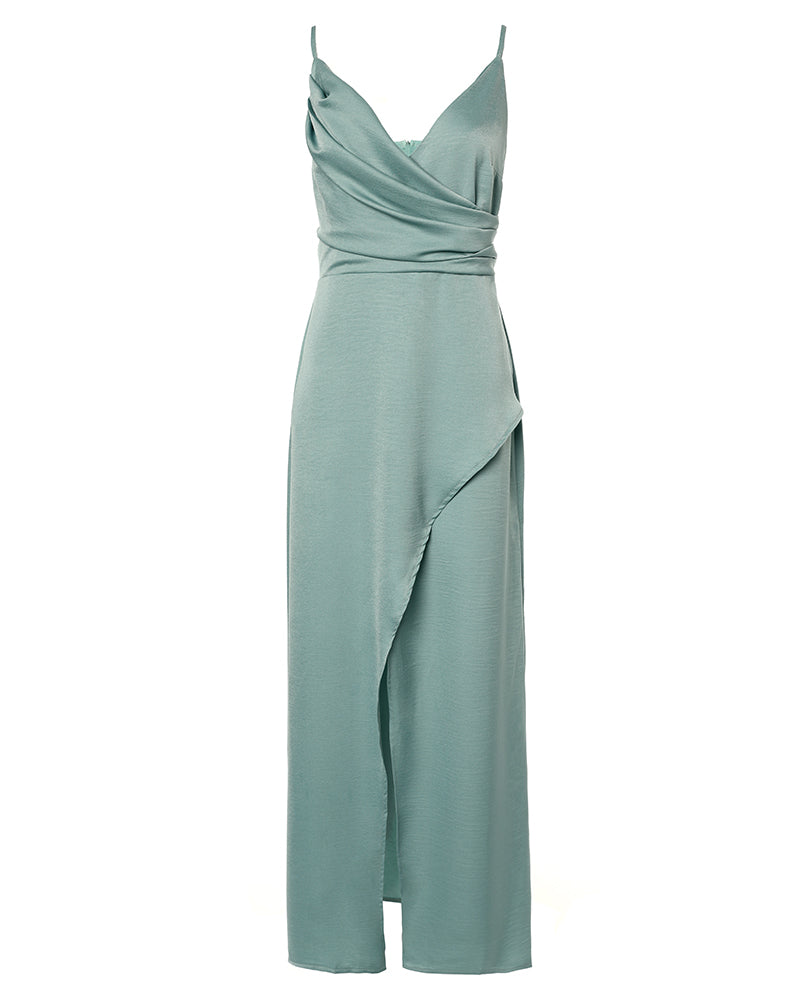 Spaghetti Strap Ruched Split Thigh Slip Dress