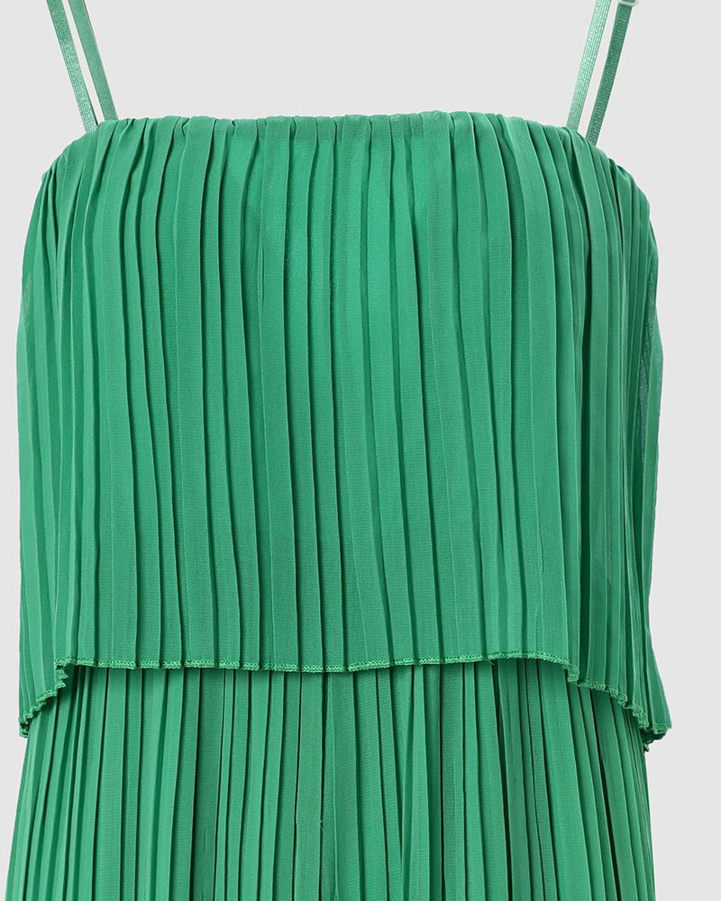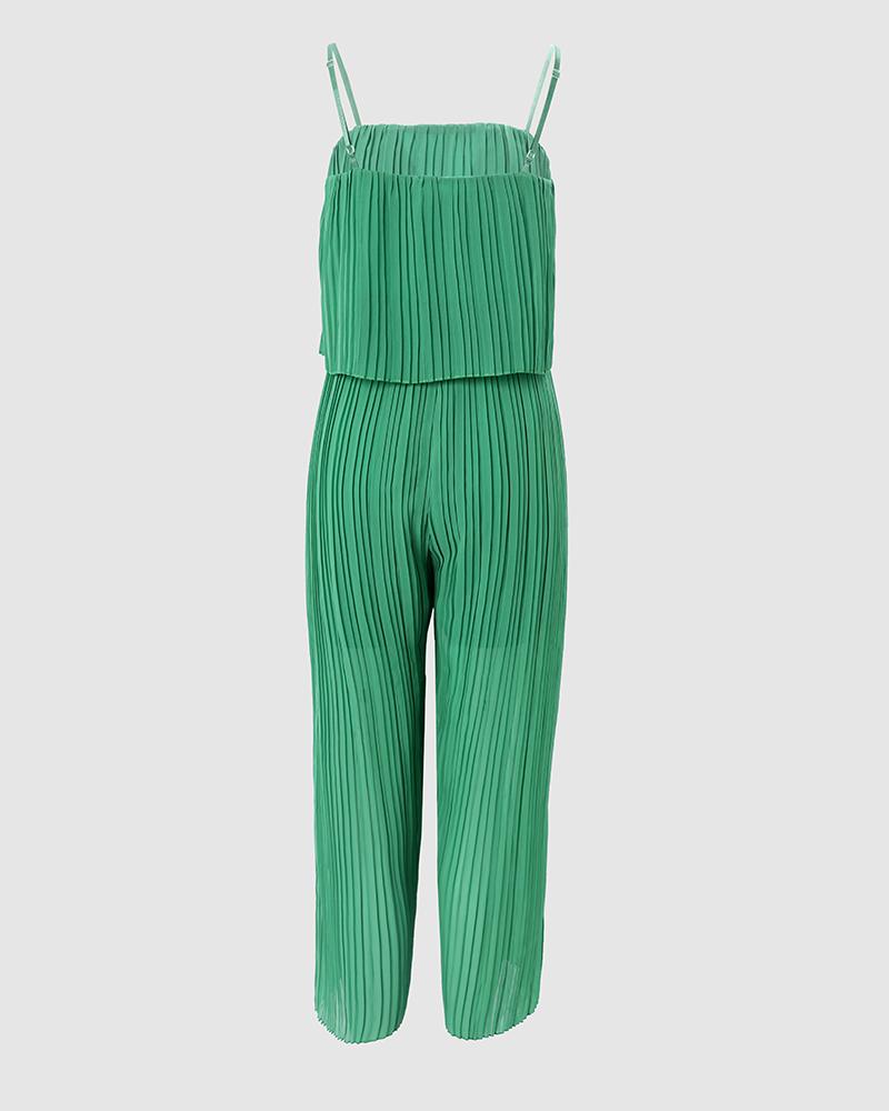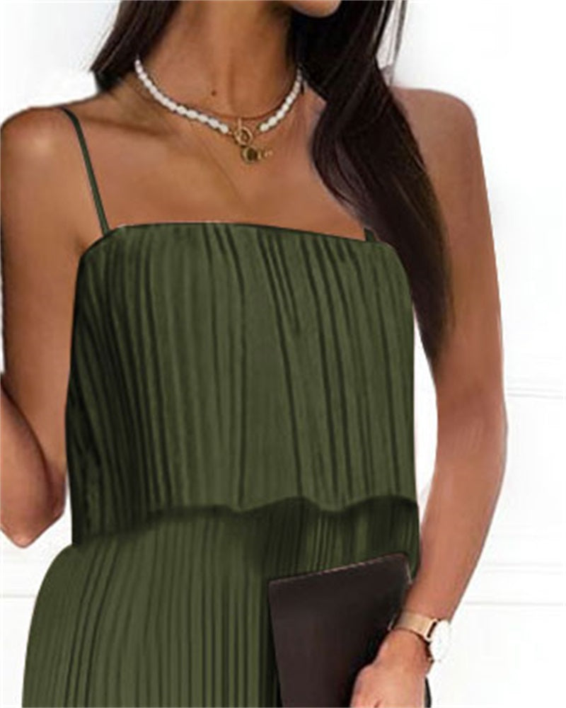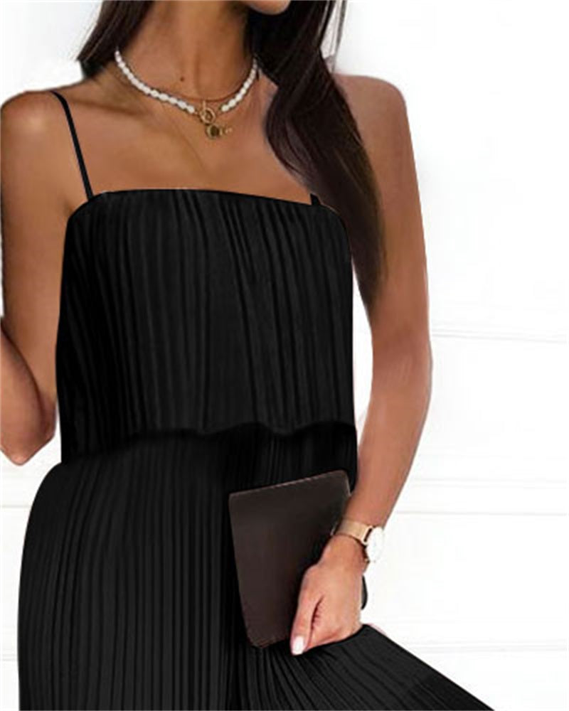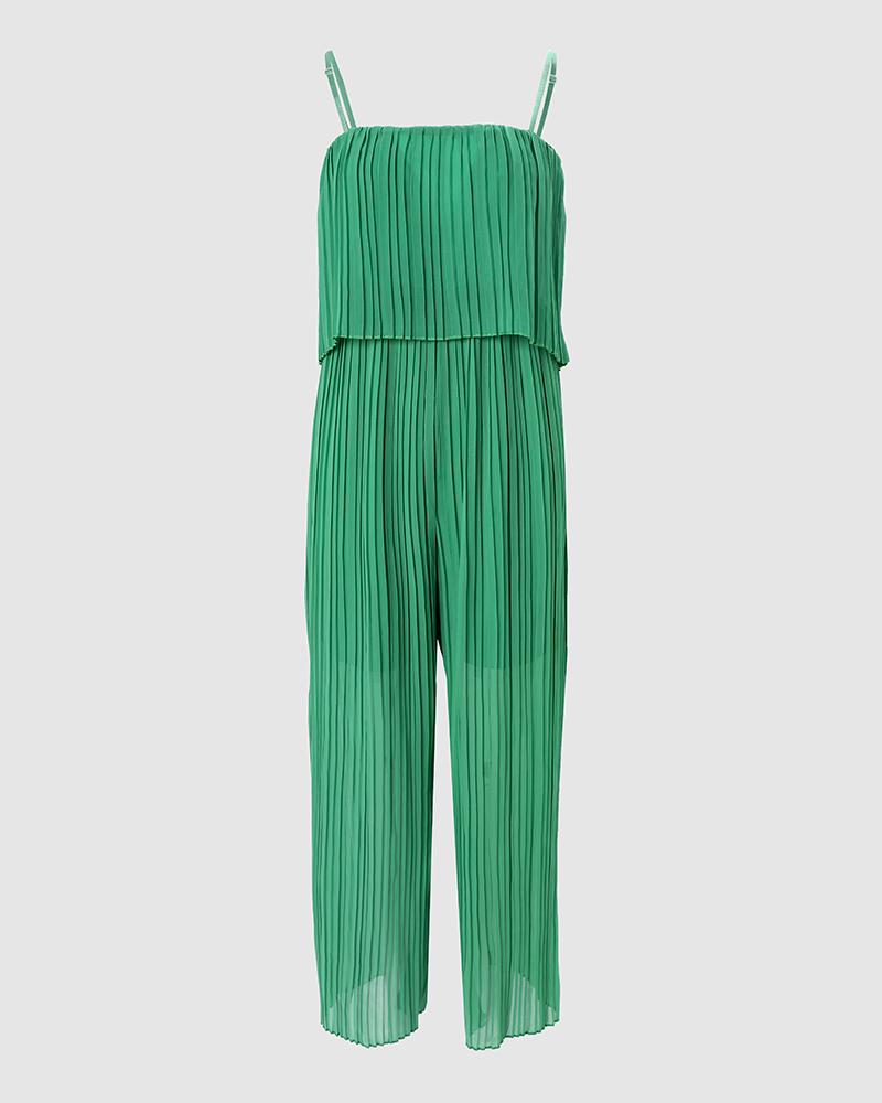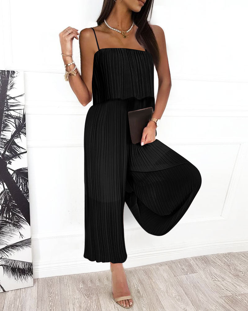 Spaghetti Strap Ruffle Hem Pleated Wide Leg Jumpsuit