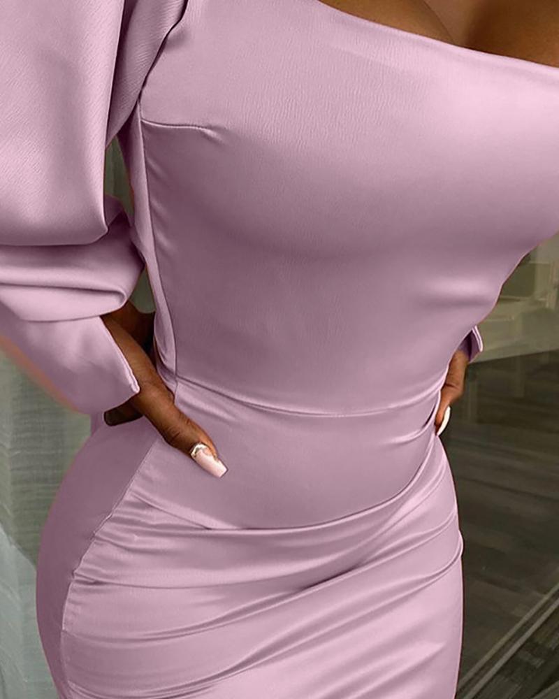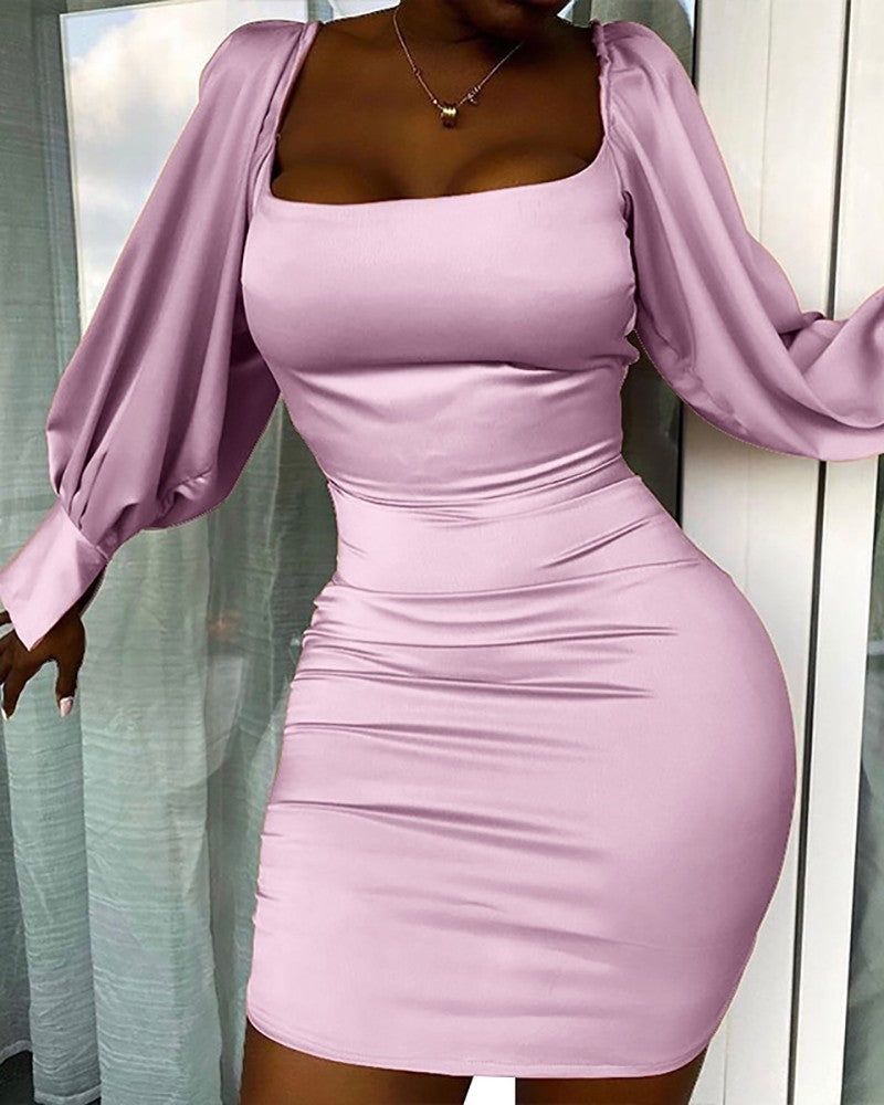 Square Neck Puff Lantern Sleeve Satin Skinny Party Dress
