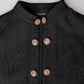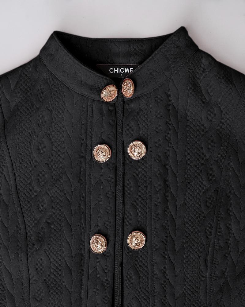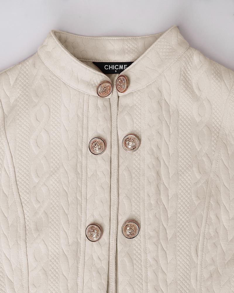 Stand Collar Long Sleeve Cable Textured Coat Button Front Jacket