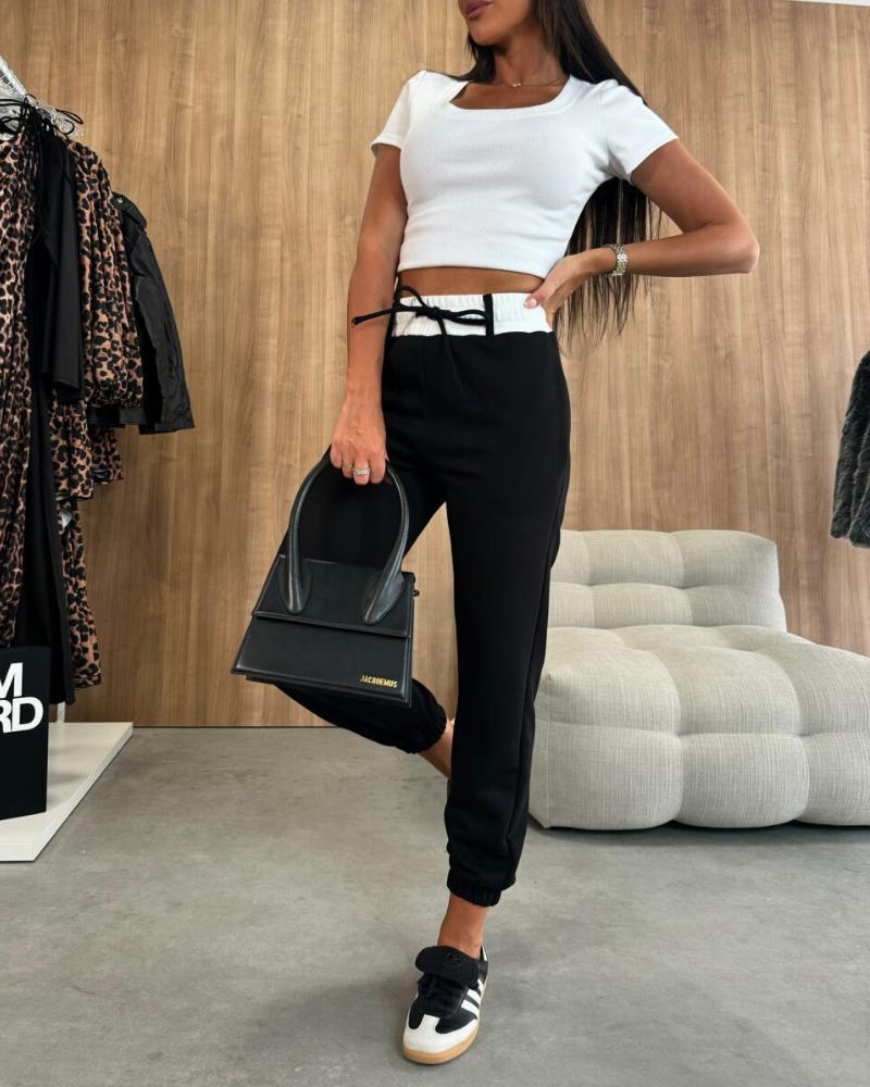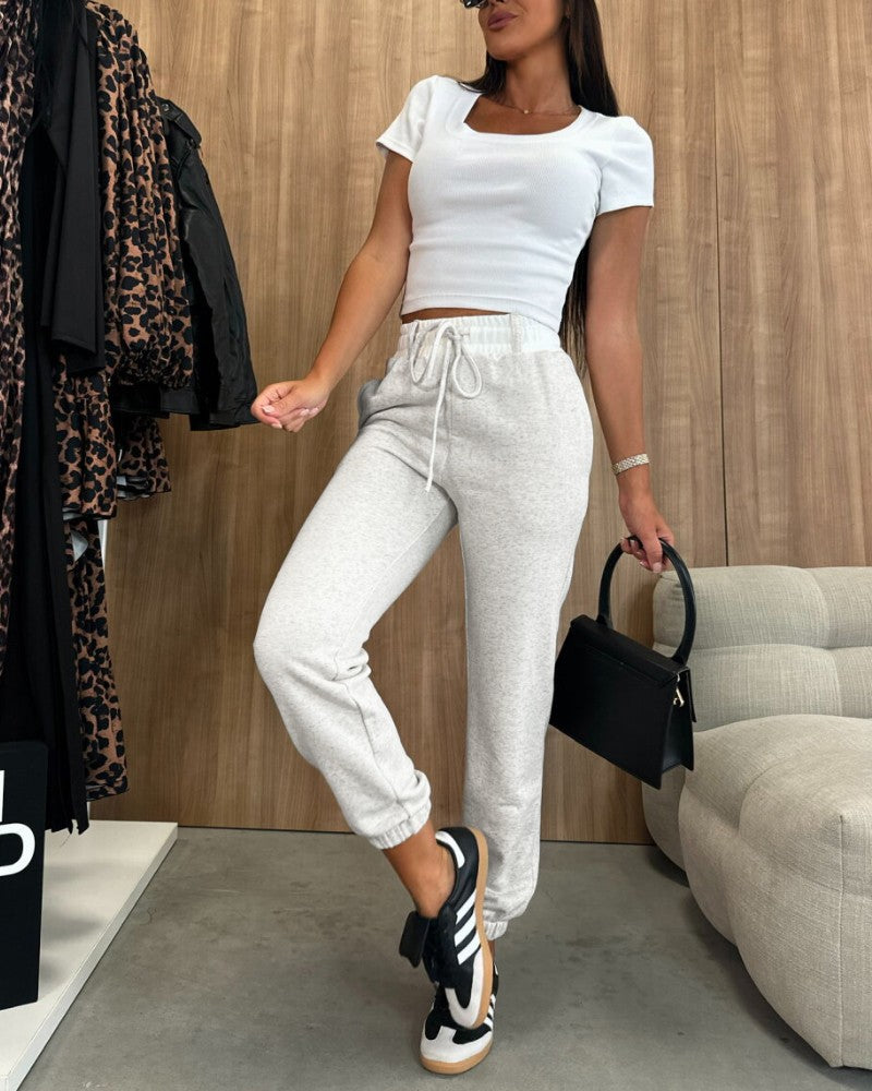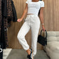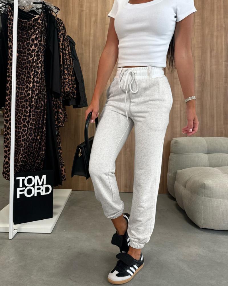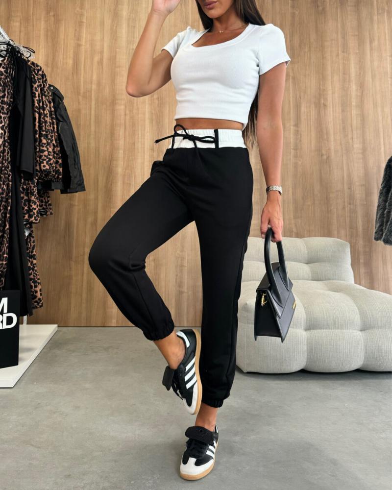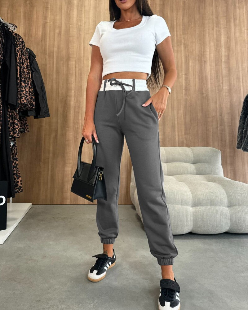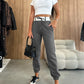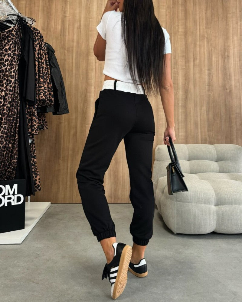 Stretchy Waist Pocket Design Cuffed Sweatpants