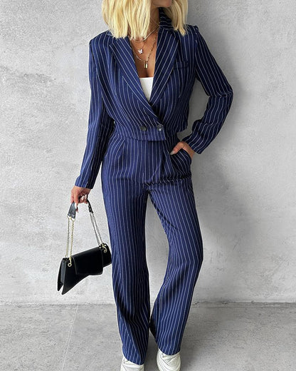 Set yourself apart with a timelessly sleek look! Our Striped Blazer Coat and straight Leg Pants Set are crafted from quality fabrics for a luxurious feel that looks polished and professional. Showcase your style with this classic look that’s sure to leave a lasting impression.