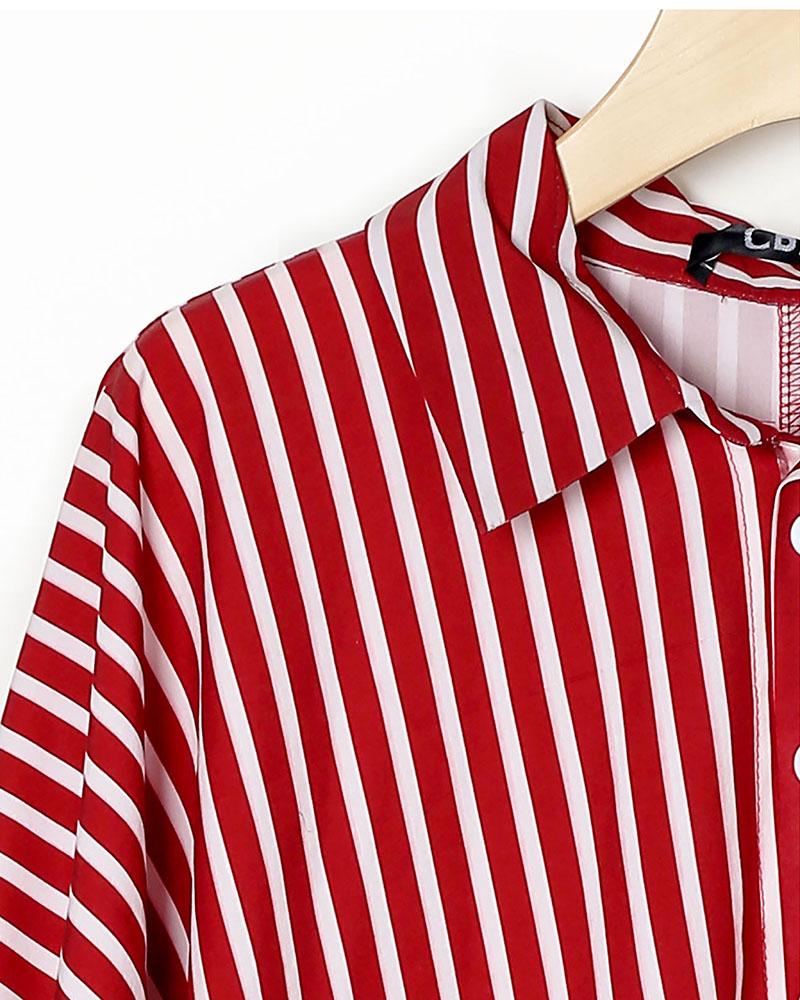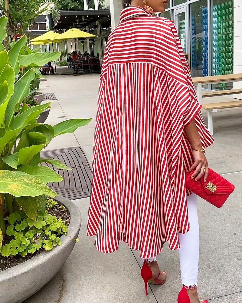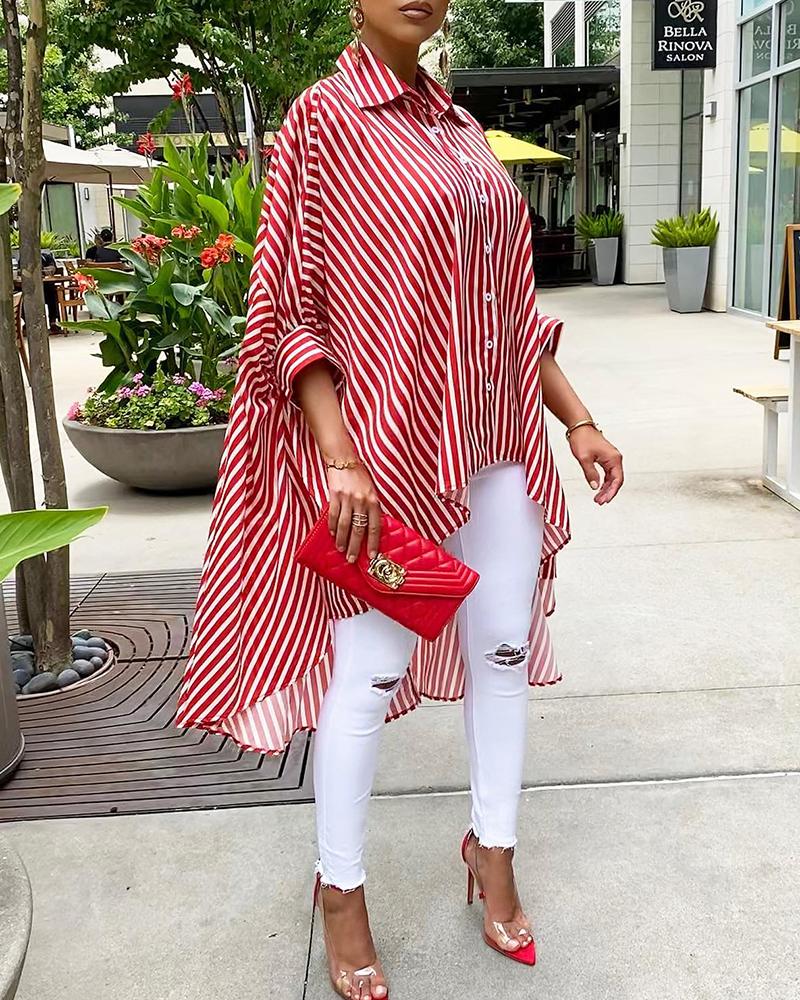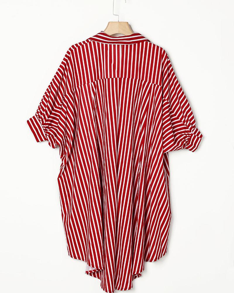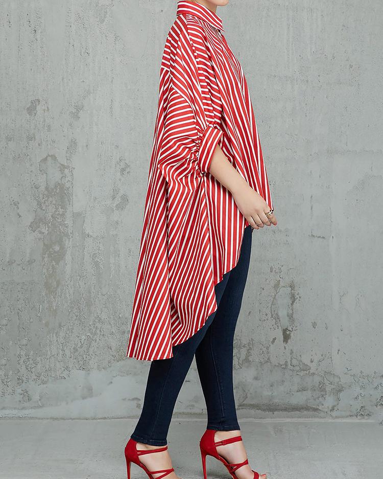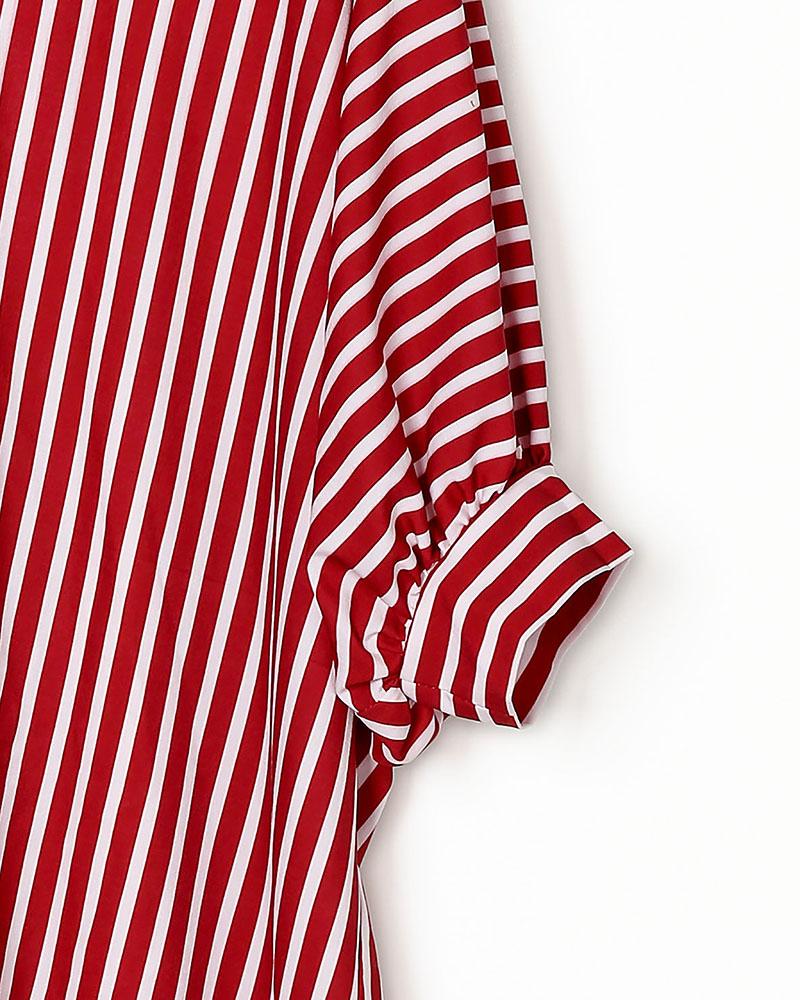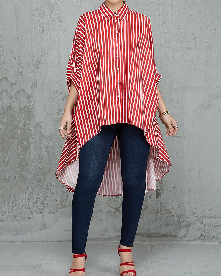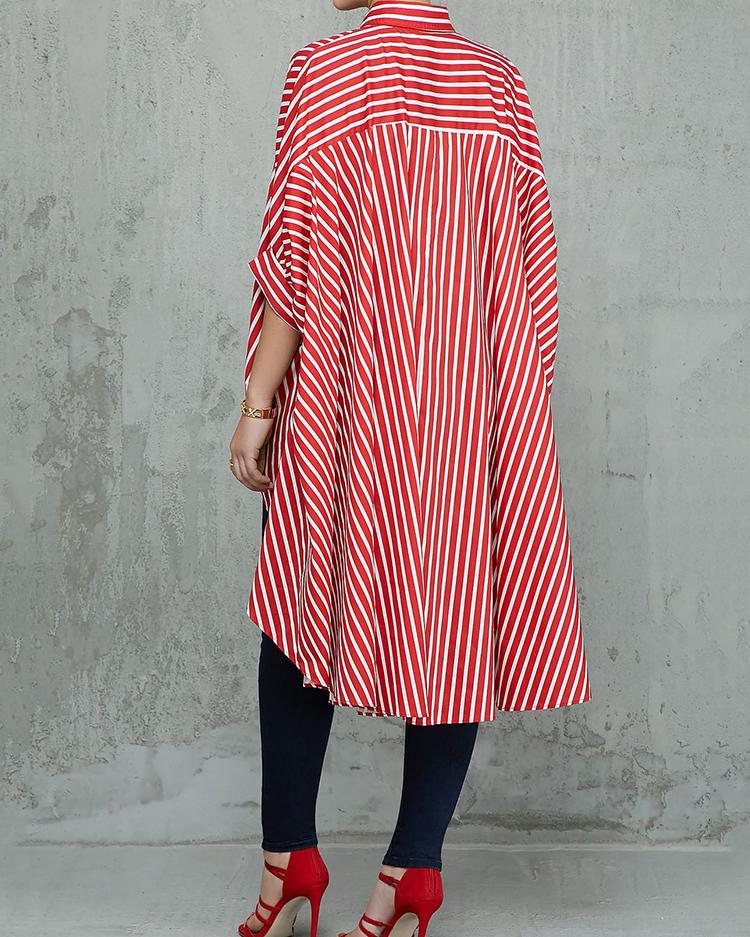 Striped Colorblock Batwing Sleeve Dip Hem Top