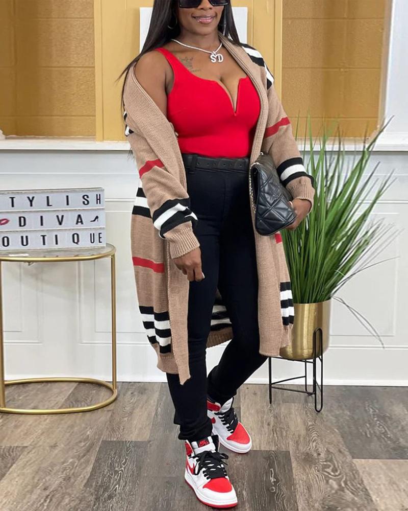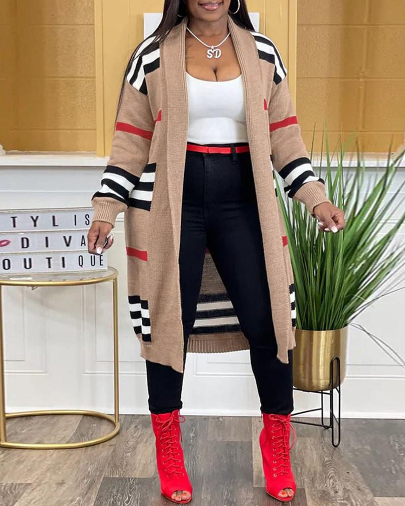 Striped Open Front Longline Knit Cardigan