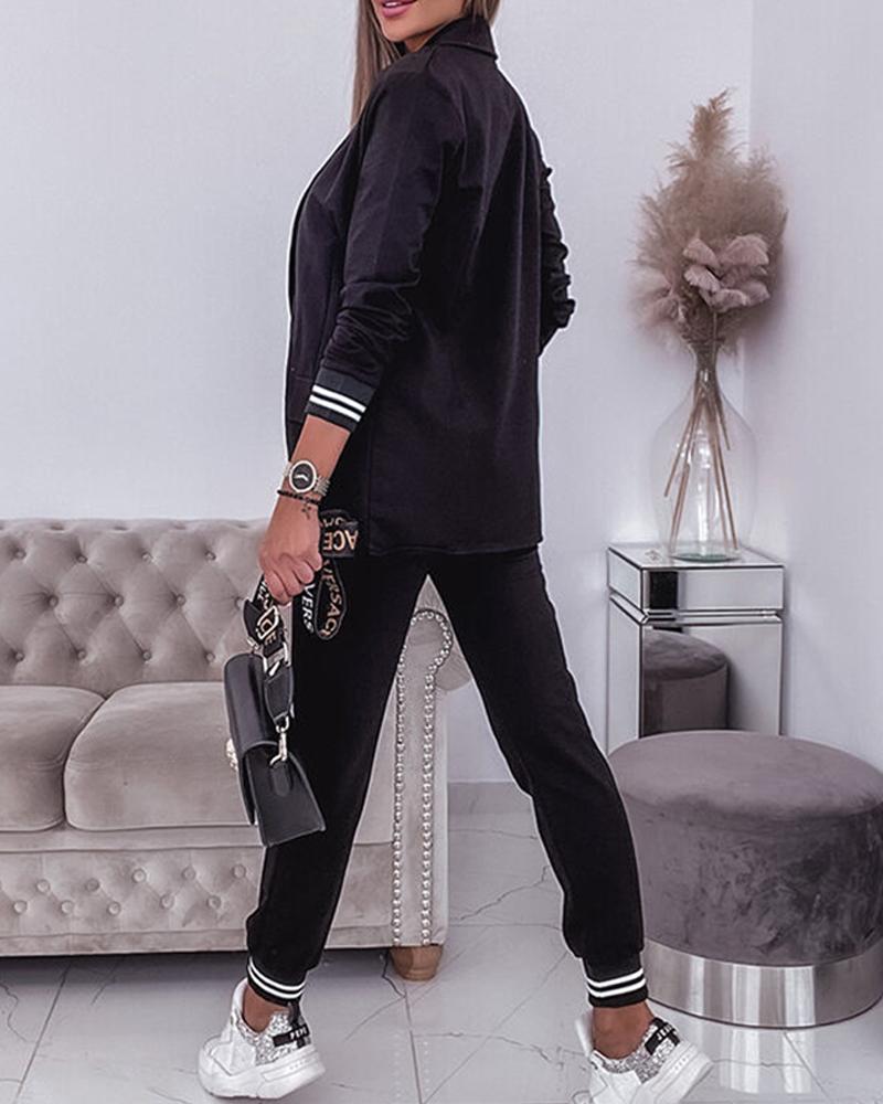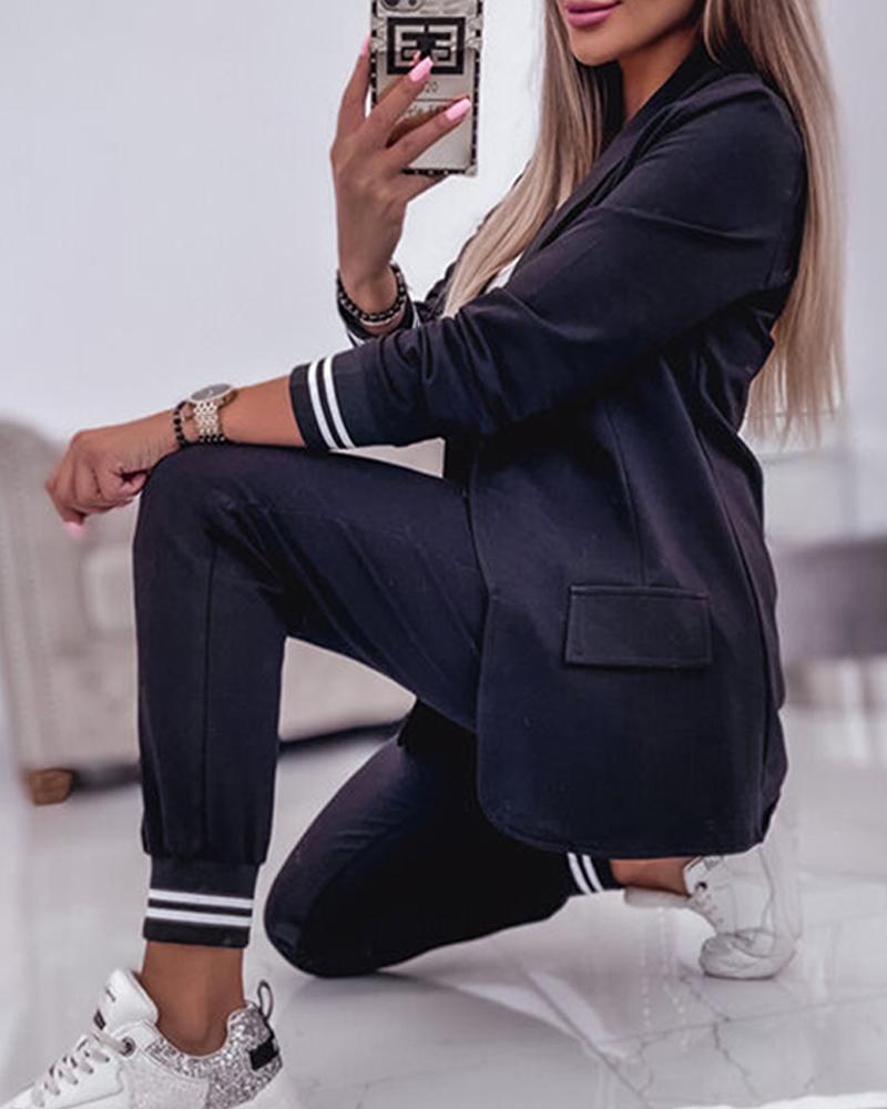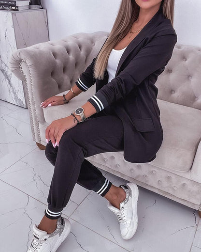 Striped Shawl Neck Coat & Cuffed Pants Set