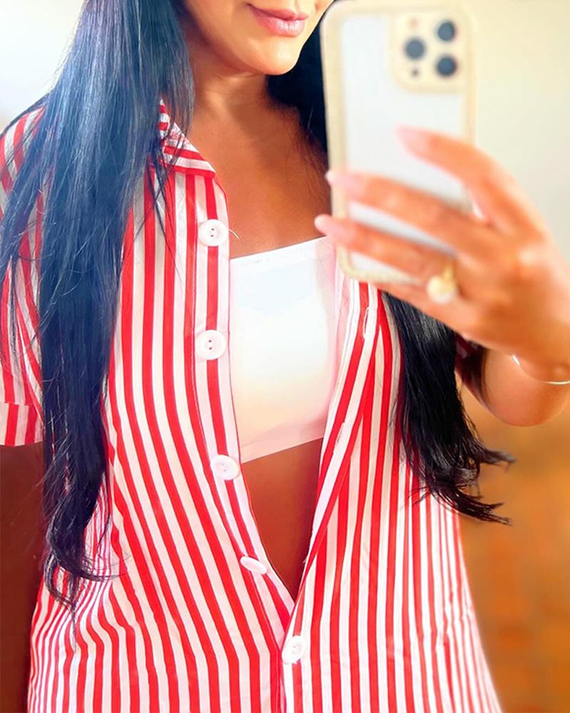Striped Short Sleeve Buttoned Casual Shirt Dress