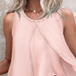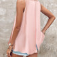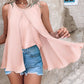 Striped Slit Beaded Round Neck Chiffon Tank Top