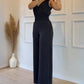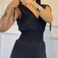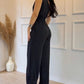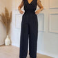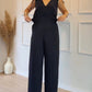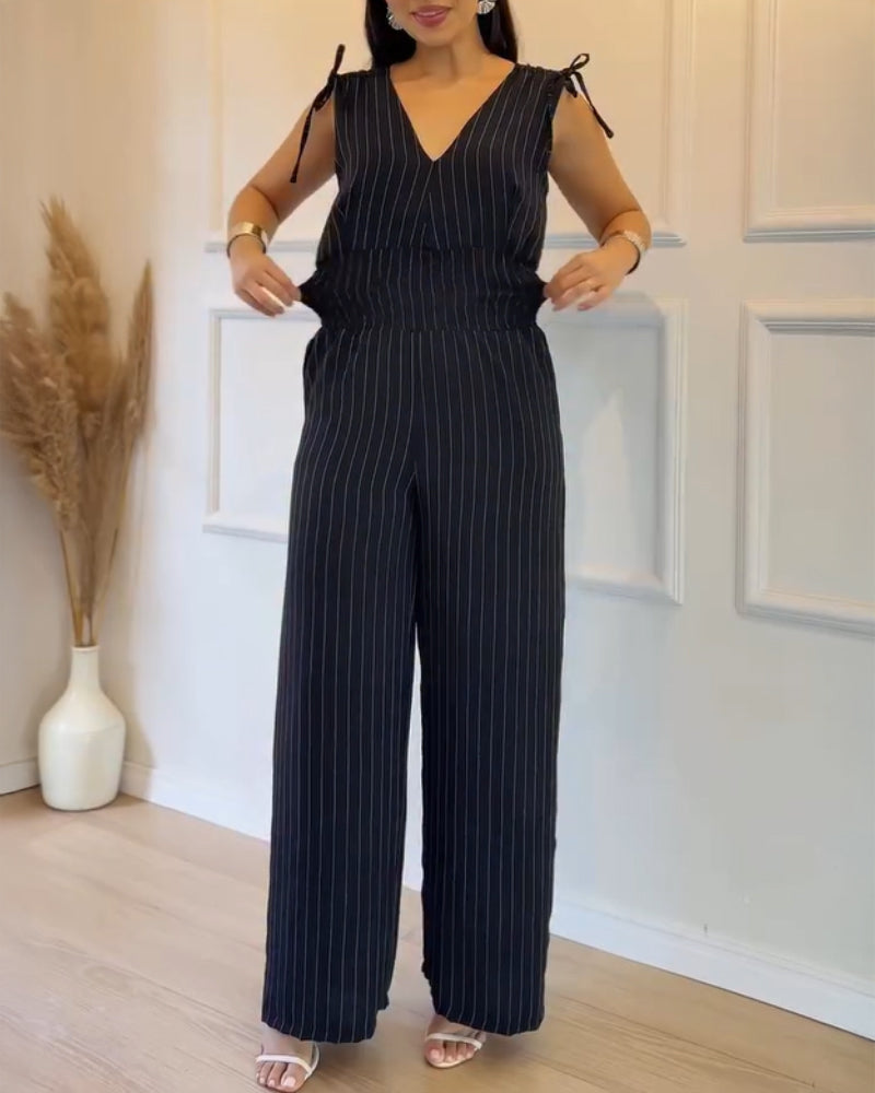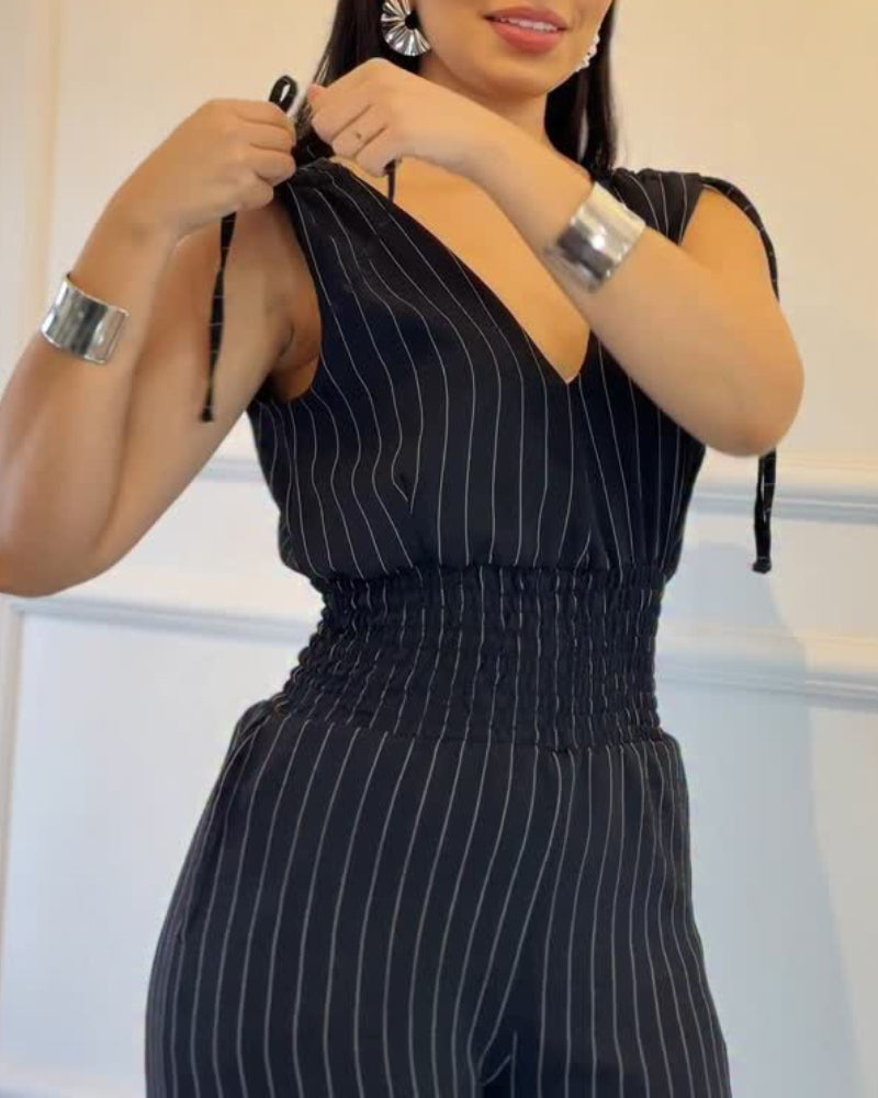 Striped V Neck Sleeveless Casual Tied Detail Shirred Cinch Jumpsuit